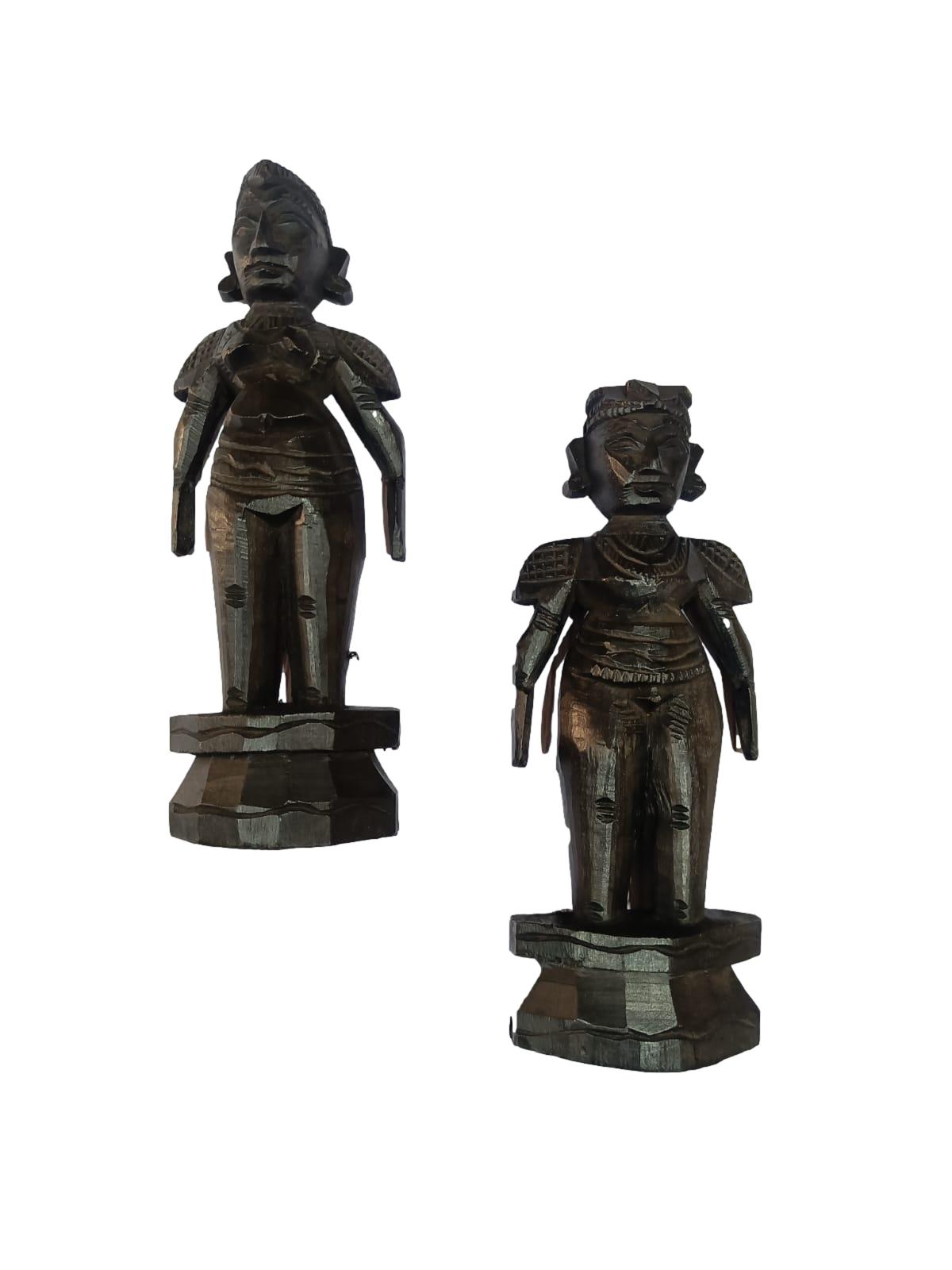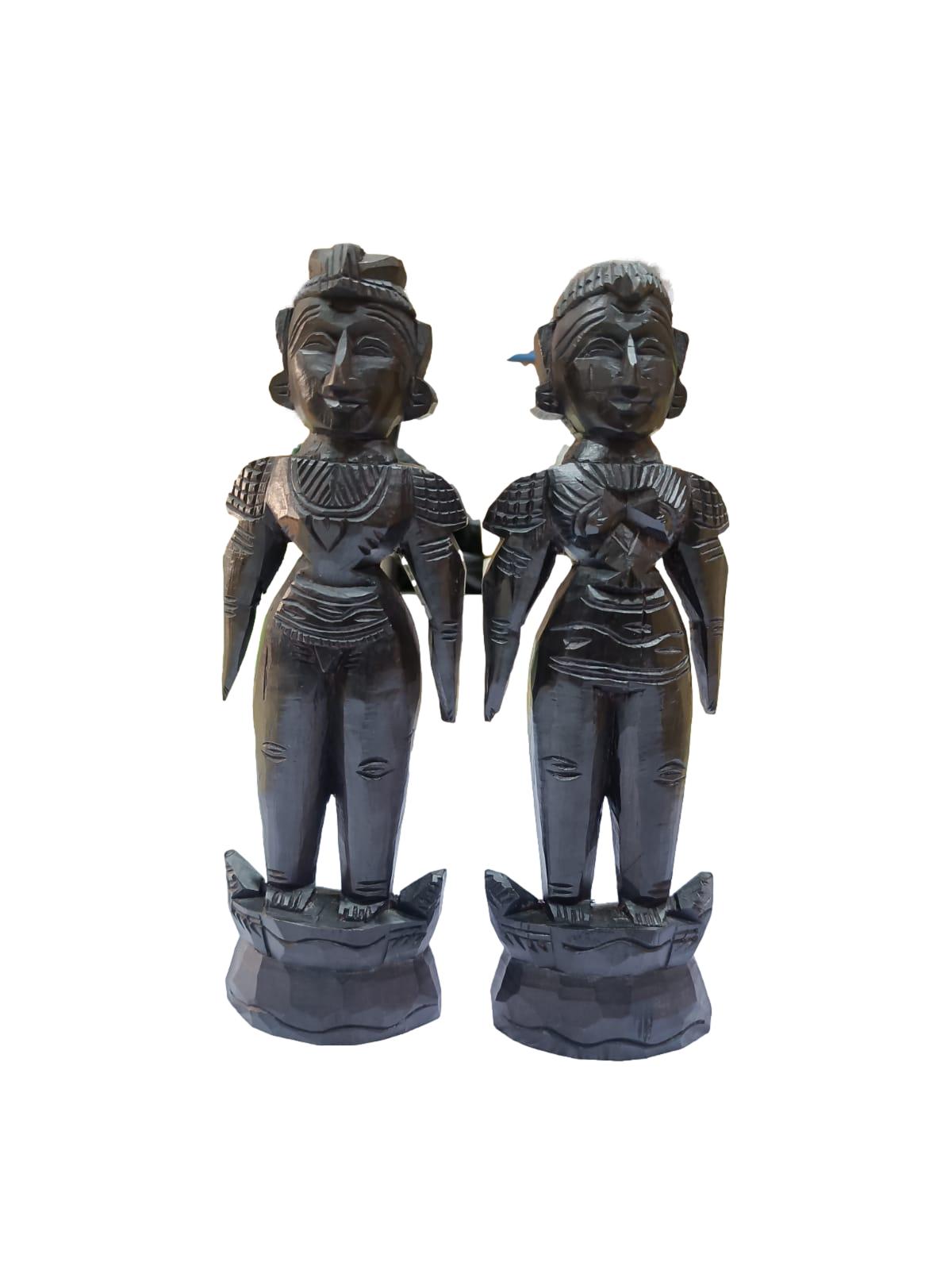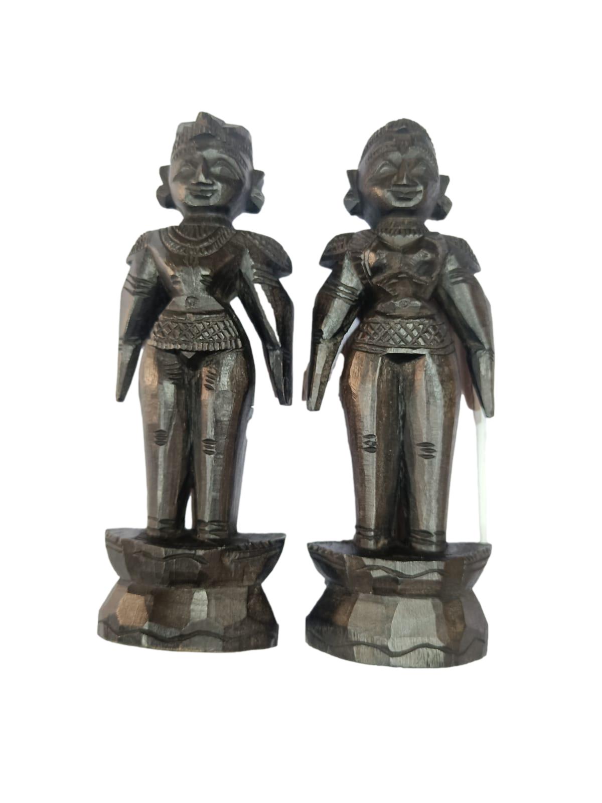The Marapachi Wooden Male and Female Pair Dolls, standing at 9 inches tall, are exquisite examples of traditional Indian craftsmanship. Carved from durable wood, these dolls represent a male and female couple typically used in South Indian festivals and rituals.