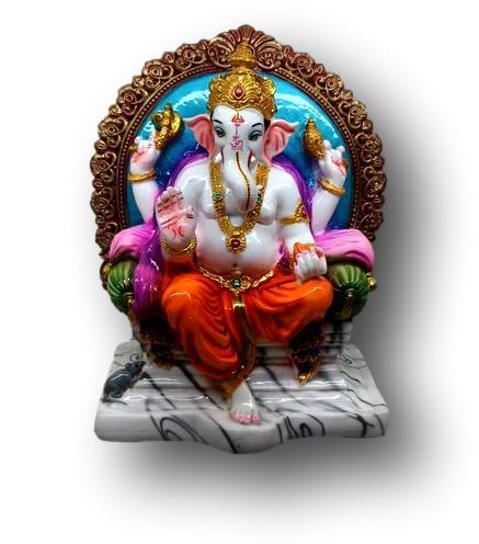 This vibrant multicolor Ganesha idol, crafted from marble dust, depicts Lord Ganesha seated royally on a simhasana (throne). With intricate detailing and rich colors, it symbolizes wisdom, success, and prosperity. A perfect piece for home decor, festive gifting, or to enhance your spiritual space.