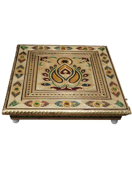 The Meenakari Manai is an exquisite traditional piece, meticulously crafted with vibrant Meenakari art. This decorative seat features intricate enamel designs, showcasing rich colors and patterns that reflect Indian craftsmanship. Ideal for placing idols during pujas or as a decorative accent, it adds elegance and cultural charm to any space. Made from durable materials, the Meenakari Manai is both functional and aesthetically pleasing, perfect for enhancing your home decor or as a thoughtful gift for loved ones.