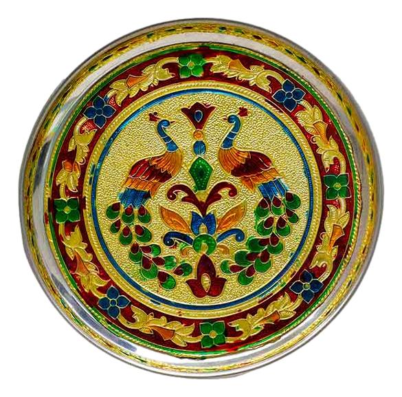 Experience timeless elegance with our Minakari Peacock Design, a masterpiece of intricate artistry. This exquisite piece showcases the traditional art of Minakari, where vibrant colors blend seamlessly with delicate detailing. The majestic peacock motif symbolizes grace and beauty, making it a perfect addition to your home decor or a thoughtful gift for someone special. Handcrafted with precision, this piece captures the essence of Indian heritage and craftsmanship, adding a touch of opulence to any space.