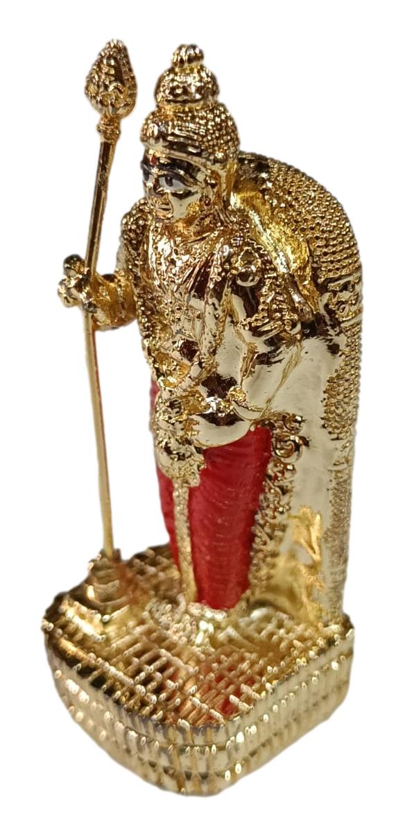 Grace your space with divine energy and elegance through this exquisitely crafted Murugan idol, beautifully gold coated and standing poised with his Vel (spear). Measuring 3 inches in height and 2 inches in width, and weighing approximately 100 grams, this compact yet radiant idol is perfect for placing in your home altar, gifting during auspicious occasions, or adding a touch of spiritual decor.