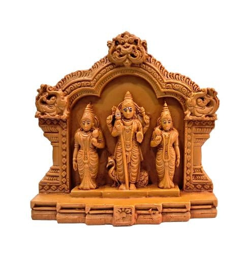 This beautifully crafted idol features Lord Murugan standing gracefully with his consorts, Valli and Deivanai, symbolizing divine love, strength, and victory. With intricate detailing and spiritual presence, it is perfect for enhancing your home decor, pooja room, or as a meaningful gift for devotees and festive occasions.