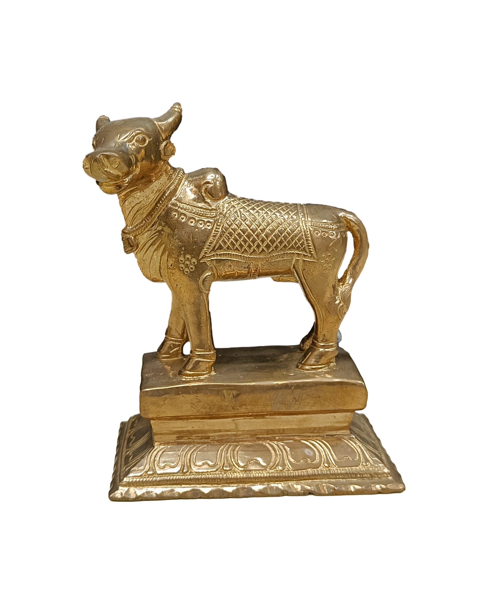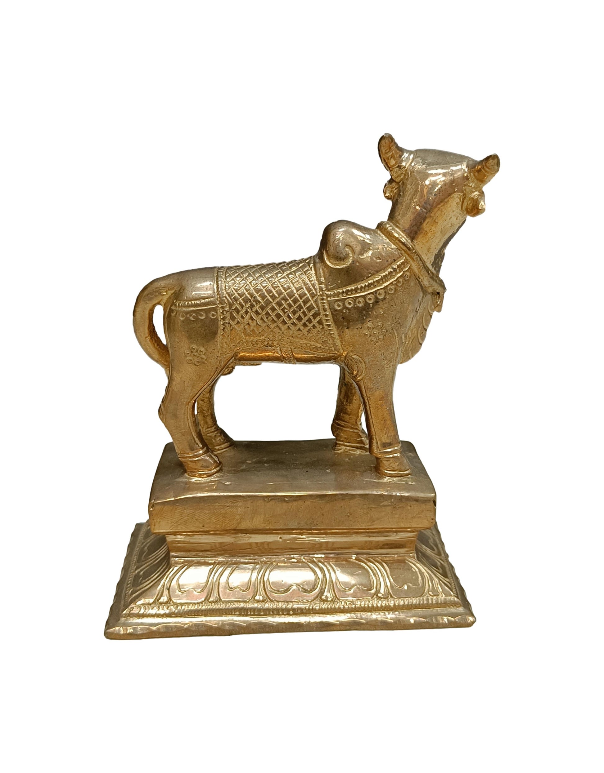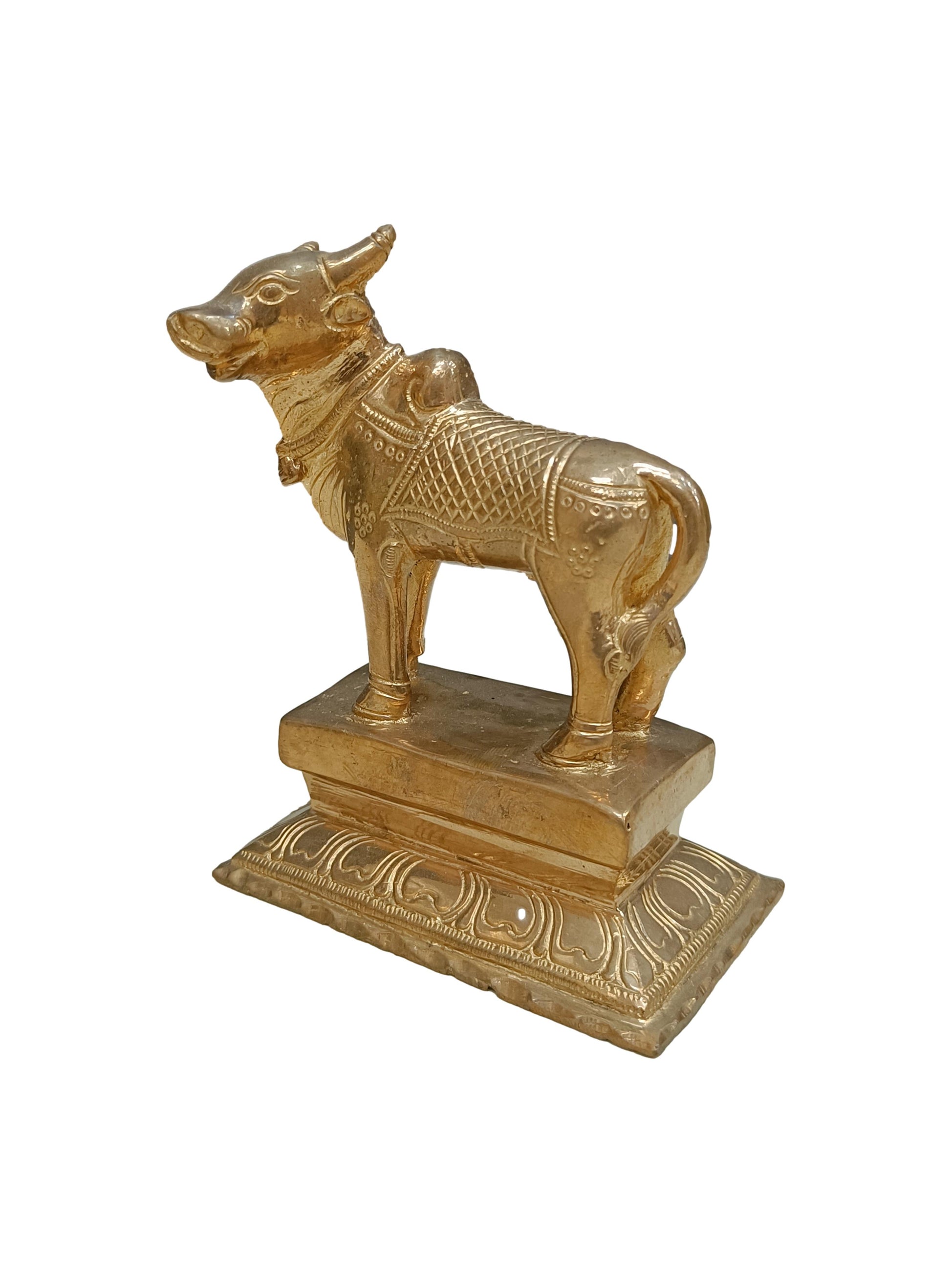 A Nandhi Panchalogam idol is a scared Hindu statue depicting Nandhi, the divine bull and devoted vehicle [vahana] of Lord Shiva. This Nandhi Panchalogam idol is not just a religious artifact but a timeless piece of art and devotion, embodying divine protection and culture heritage.
