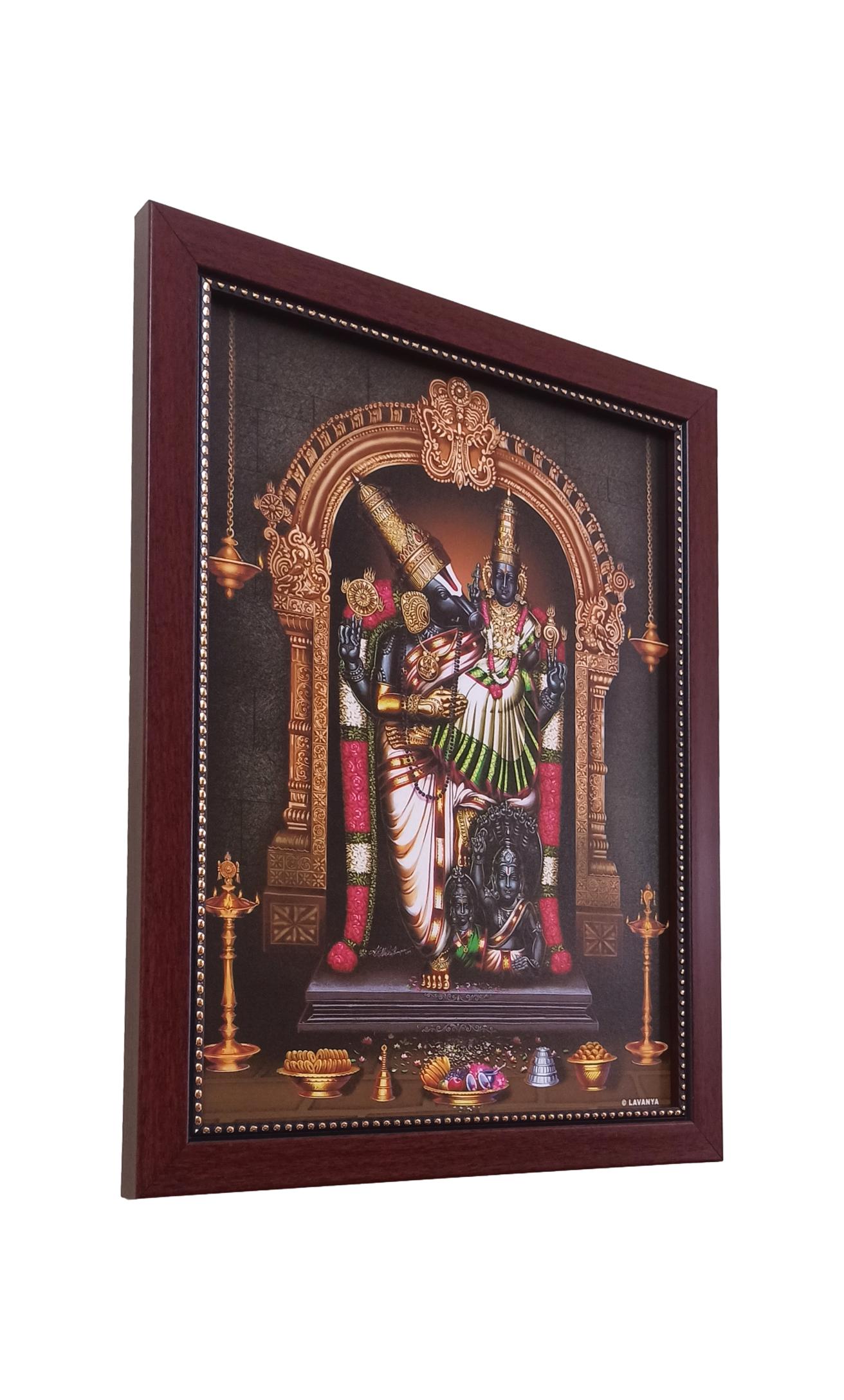 Elevate your spiritual space with the Nitya Kalyana Perumal Photo Frame, a symbol of eternal grace and auspiciousness. This exquisite frame features a depiction of Lord Vishnu in his Nitya Kalyana Perumal form, embodying eternal bliss and divine union. The frame is meticulously crafted with intricate details, capturing the essence of devotion and reverence. With its premium quality and elegant design, it adds a touch of serenity and spirituality to any setting. Whether for personal worship or as a thoughtful gift, the Nitya Kalyana Perumal Photo Frame inspires a sense of harmony, blessings, and divine presence in your home or sacred space.