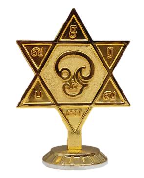 - "Embrace divine blessings with the Om Saravana Bhava gold-coloured idol. Crafted with exquisite detail, this sacred piece radiates spiritual energy and reverence. The Om symbol, intertwined with the divine spear of Lord Murugan, symbolizes purity, strength, and protection. Place it in your home or sacred space to invoke blessings of prosperity and success. Made with high-quality materials, this idol is a timeless addition to your spiritual collection, resonating with deep meaning and devotion."