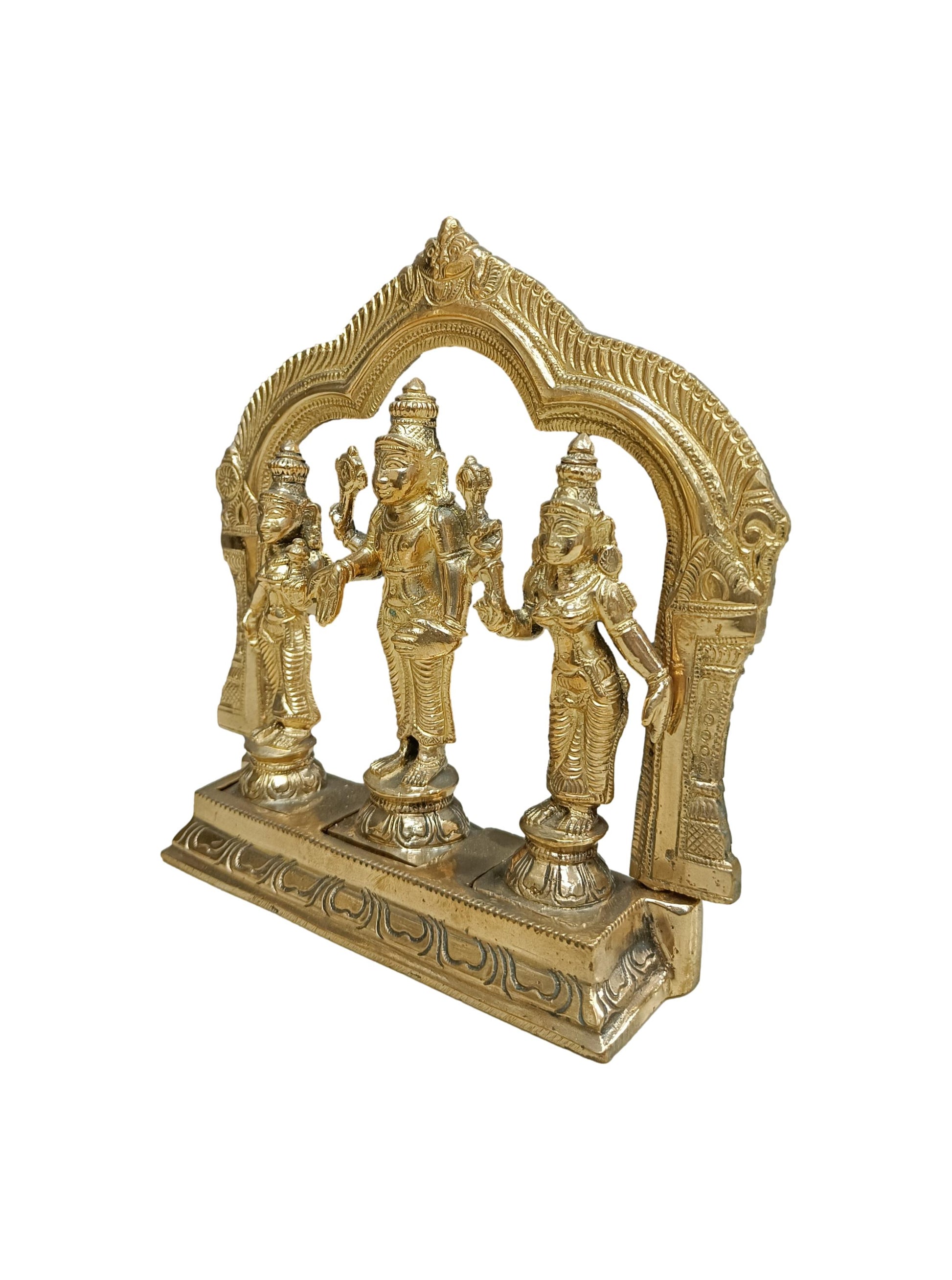 The idols are crafted from Panchalogam (a sacred five-metal alloy), symbolizing purity and auspicious energy. Every detail—from the serene expression of Perumal to the graceful posture of the divine consorts—reflects fine craftsmanship and devotion.