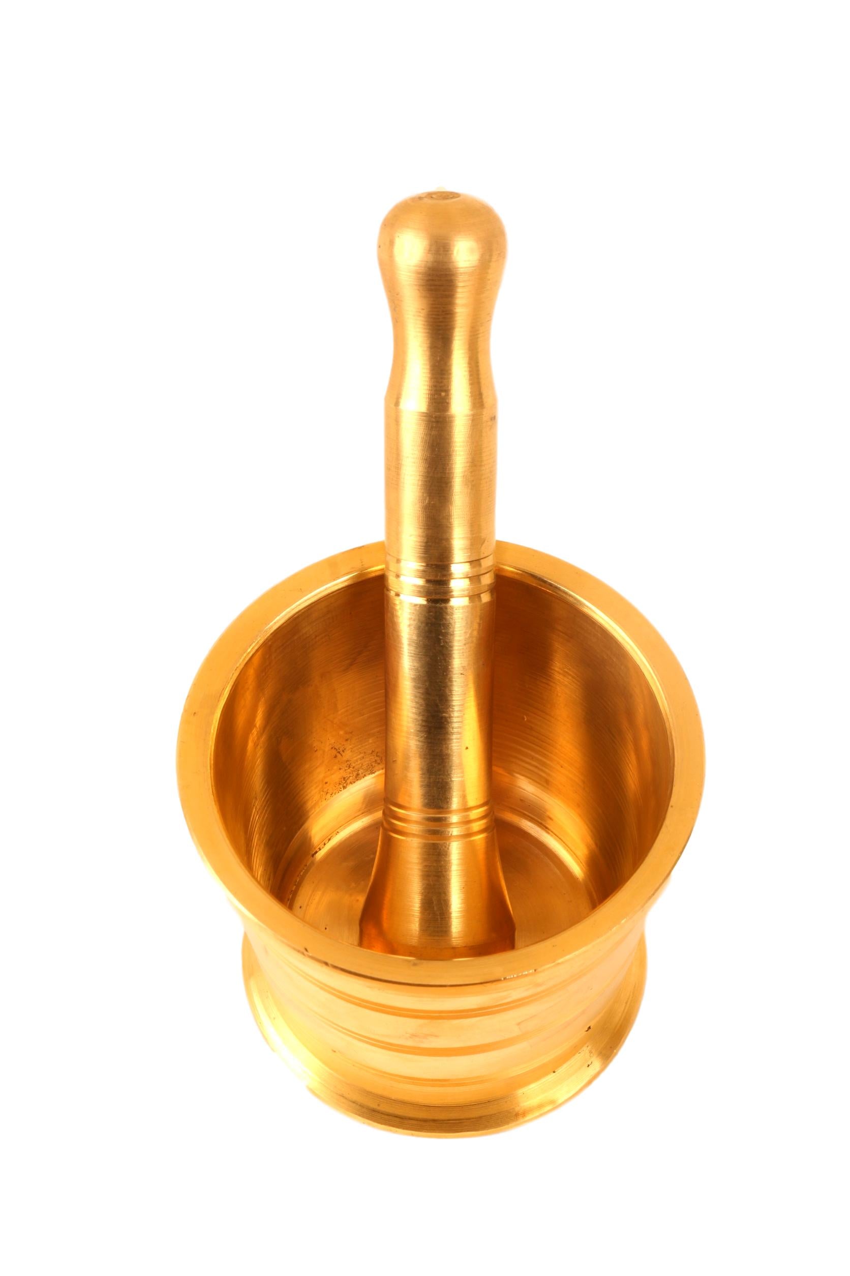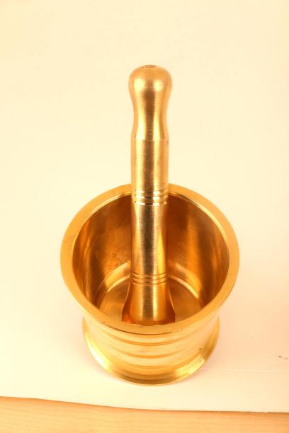 Introducing our Pure Brass Traditional Mortar & Pestle Ural, a timeless kitchen essential designed for durability and elegance. Crafted from high-quality brass, this mortar and pestle set ensures efficient grinding and blending of spices, herbs, and other ingredients, enhancing the flavors of your culinary creations. Its traditional design not only adds a touch of vintage charm to your kitchen but also guarantees longevity and easy maintenance. Ideal for both home cooks and professional chefs, this Ural is perfect for creating authentic, flavorful dishes. Elevate your cooking experience with this exquisite brass mortar and pestle set.