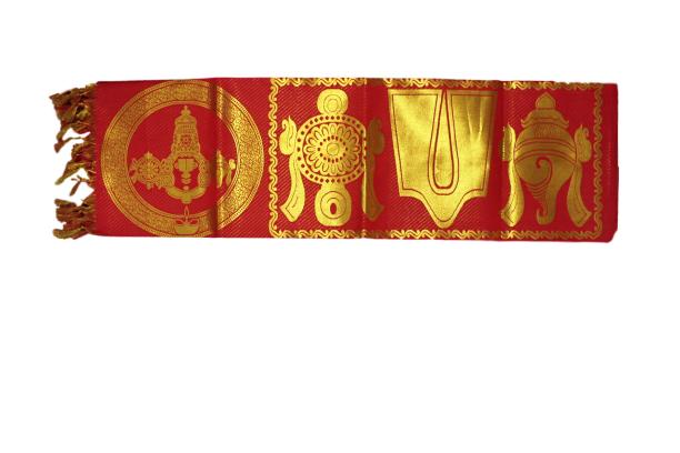 Introducing the exquisite Red Zari Tirupati Balaji Shawl, a stunning piece of devotional elegance. Crafted with rich red fabric, this shawl is adorned with intricate Zari work, depicting the divine image of Lord Balaji. The luxurious texture and vibrant color symbolize prosperity and devotion, making it a perfect offering or keepsake for devotees. Ideal for draping during rituals, temple visits, or as a special gift, this shawl encapsulates the spiritual essence and grace of Tirupati Balaji. Embrace the divine blessings and elevate your spiritual journey with this beautifully designed Zari Tirupati Balaji Shawl.