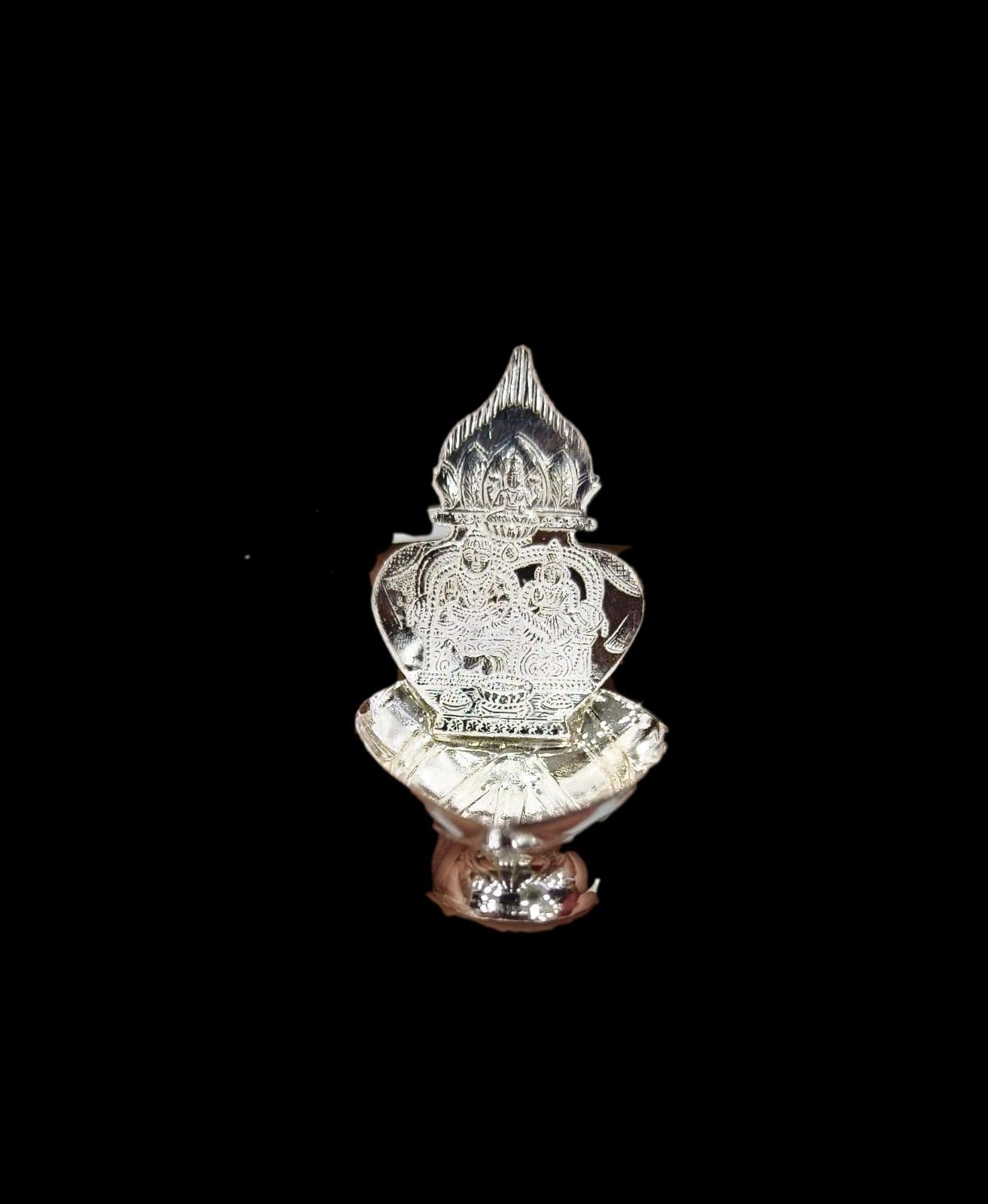 Front: Deep silver diya (oil lamp) with spacious cavity for lasting flame