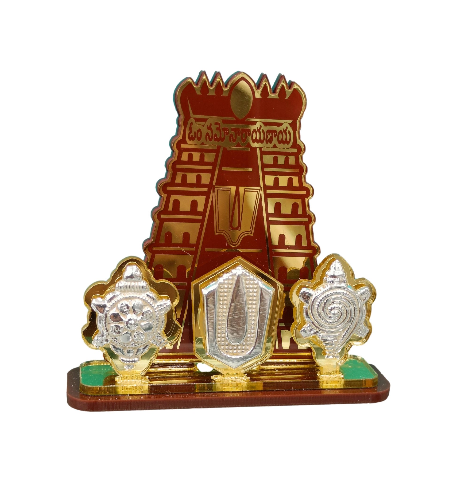 Graceful Balaji Namam stand crafted in pure silver, representing the sacred Shanku, Chakra, and Namam symbols of Lord Venkateswara. A perfect addition to your puja altar or as a spiritual gift for auspicious occasions. Radiates divine presence and blessings.