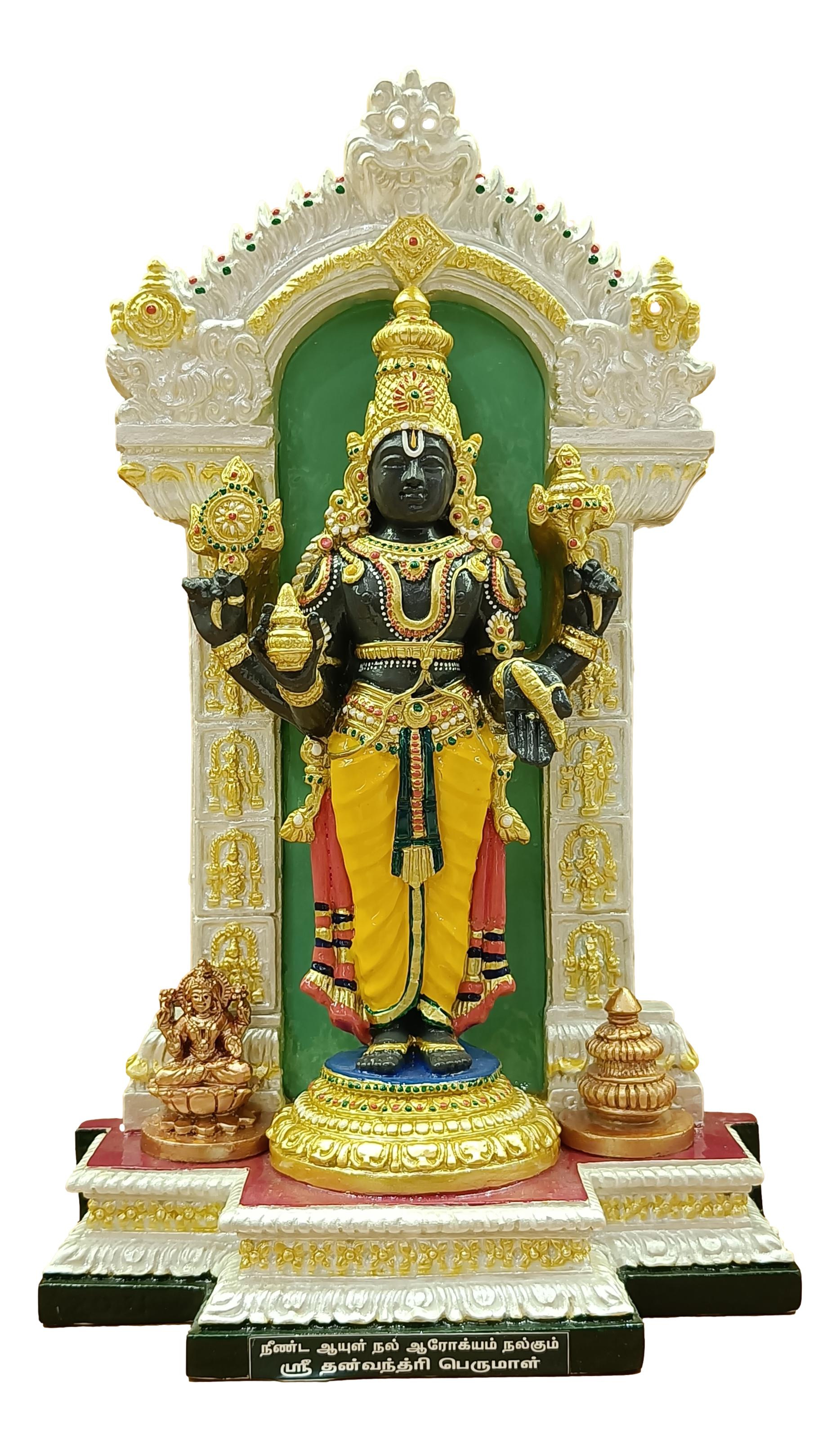 Sri Dhanvantri Perumal Silver Colour Fiberglass