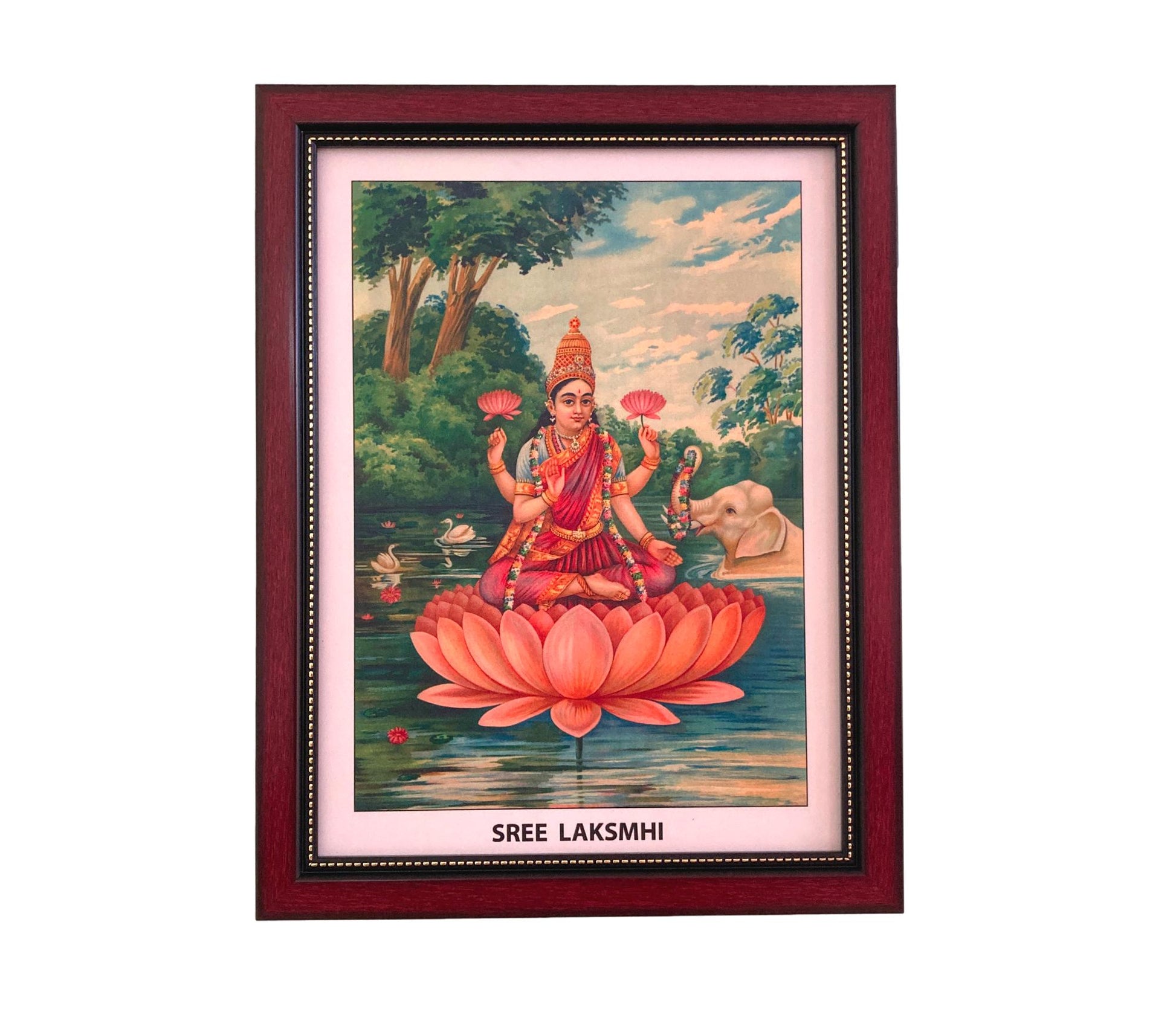 Embrace divine grace with the Sri Lakshmi on Lotus Antique Photo Frame, a symbol of abundance and prosperity. This exquisite frame showcases Goddess Lakshmi seated on a lotus flower, radiating beauty and blessings. The antique finish accentuates every detail, creating a timeless and elegant piece. Crafted with care, this frame adds a touch of spirituality to any home or sacred space. Whether as a personal keepsake or a thoughtful gift, the Sri Lakshmi on Lotus Antique Photo Frame embodies wealth, fortune, and auspiciousness, inviting positivity and prosperity into your life and surroundings.