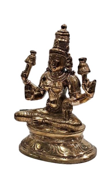 The Sri Mahalakshmi Panchalogam idol is a divine masterpiece crafted with precision and devotion. Made from a blend of five sacred metals (panchalohas), including gold, silver, copper, zinc, and iron, this idol symbolizes auspiciousness and prosperity. The intricate detailing on the idol reflects the goddess's divine grace and beauty, with each feature meticulously crafted to evoke a sense of reverence and devotion. Perfect for home or temple altars, this idol radiates positive energy and blessings, inviting abundance and prosperity into the lives of those who worship it. Embrace the blessings of Goddess Mahalakshmi with this exquisite idol.