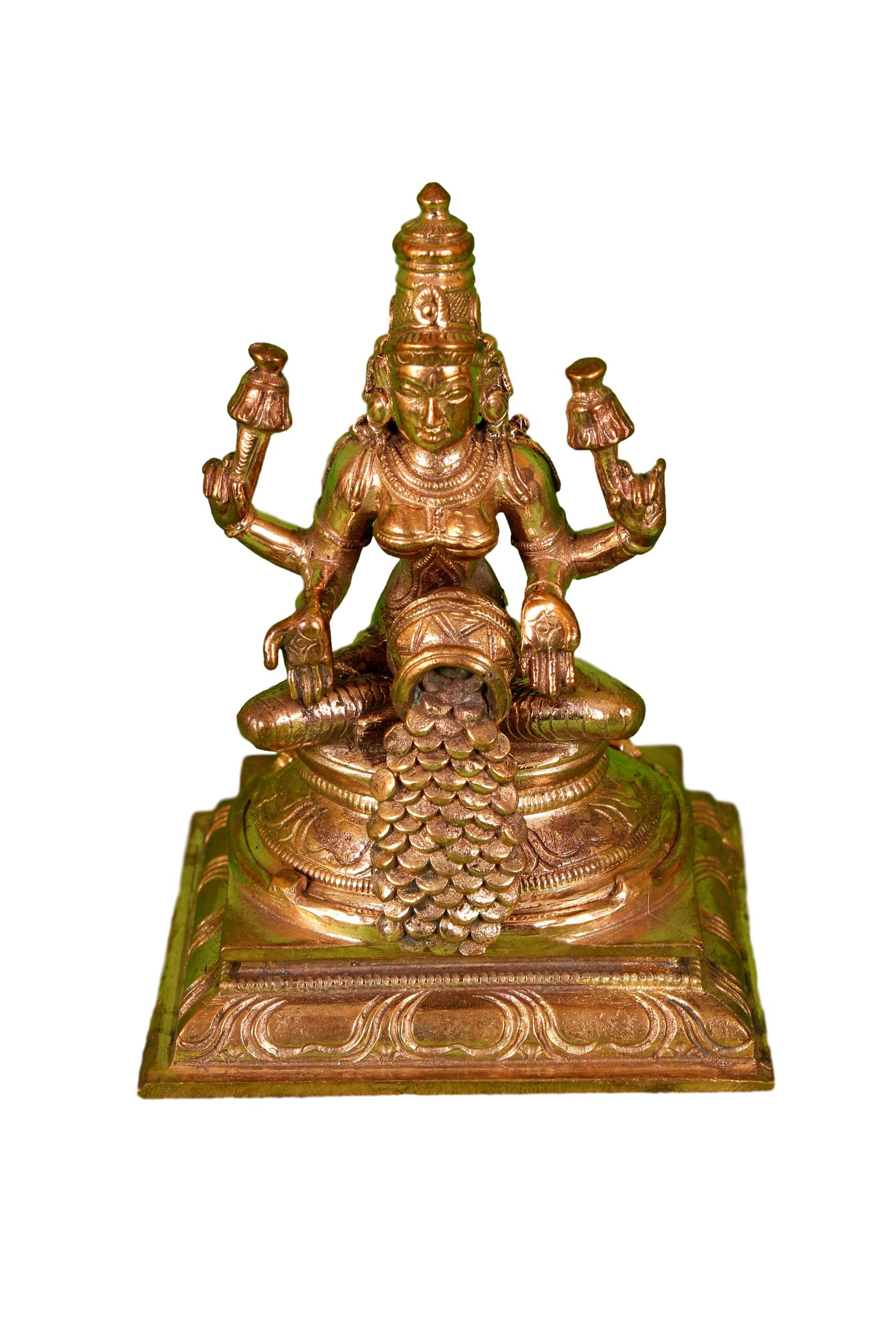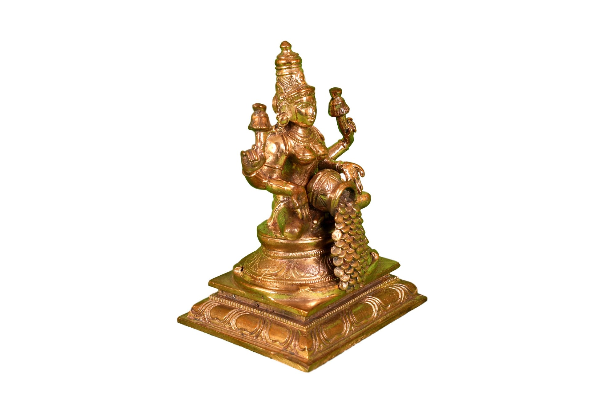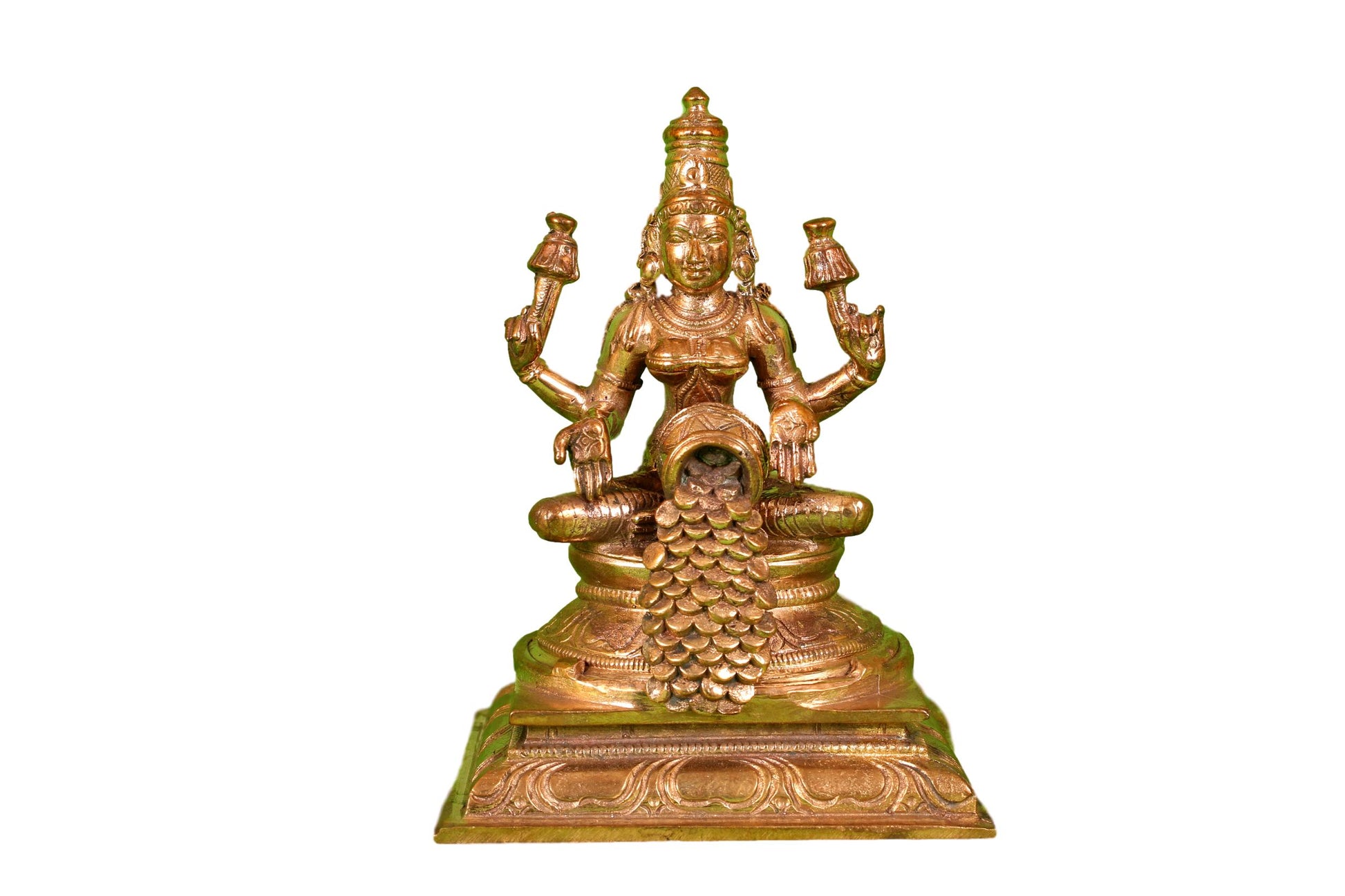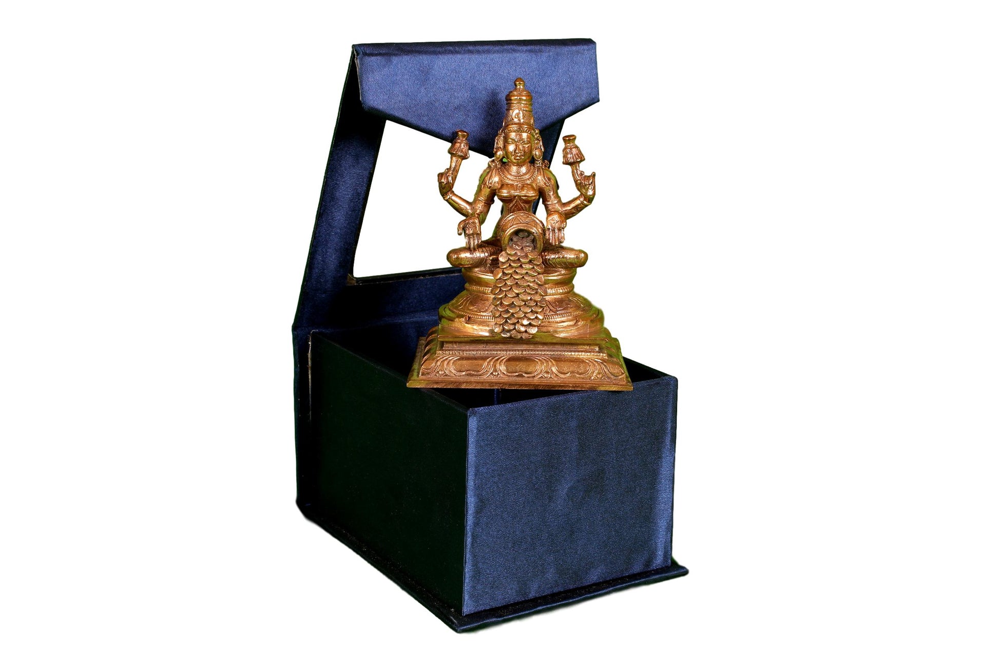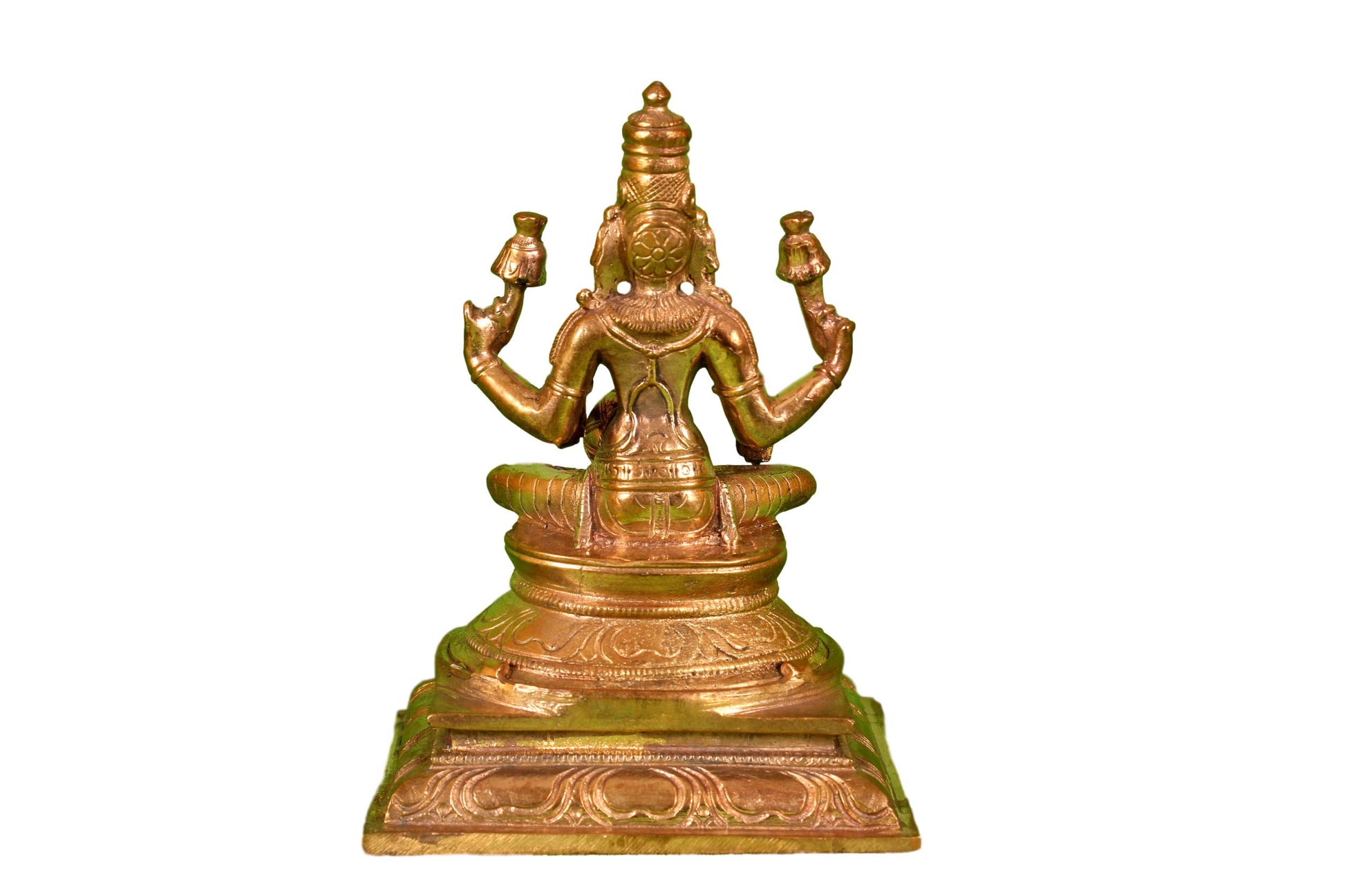 Discover the divine grace of Sri Mahalakshmi embodied in this exquisite Panchalogam idol. Crafted with meticulous artistry, this idol showcases the goddess in all her splendor, adorned with traditional ornaments and intricate detailing. The amalgamation of five sacred metals—gold, silver, copper, tin, and lead—adds a mystical aura, believed to attract prosperity and blessings into your home. Radiating serenity and abundance, this idol serves as a timeless symbol of wealth and well-being, making it an ideal centerpiece for your altar or sacred space. Invite the blessings of Sri Mahalakshmi into your life with this stunning Panchalogam idol, a true embodiment of divine beauty and blessings.