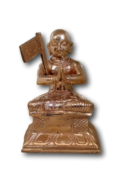 Celebrate the wisdom and legacy of Sri Ramanujar, the great Vaishnavite philosopher and acharya, with this beautifully crafted 5-inches idol made from sacred Panchalogam (five-metal alloy). Designed with intricate detail, the idol portrays Sri Ramanujar in a traditional seated posture, radiating spiritual grace and reverence.