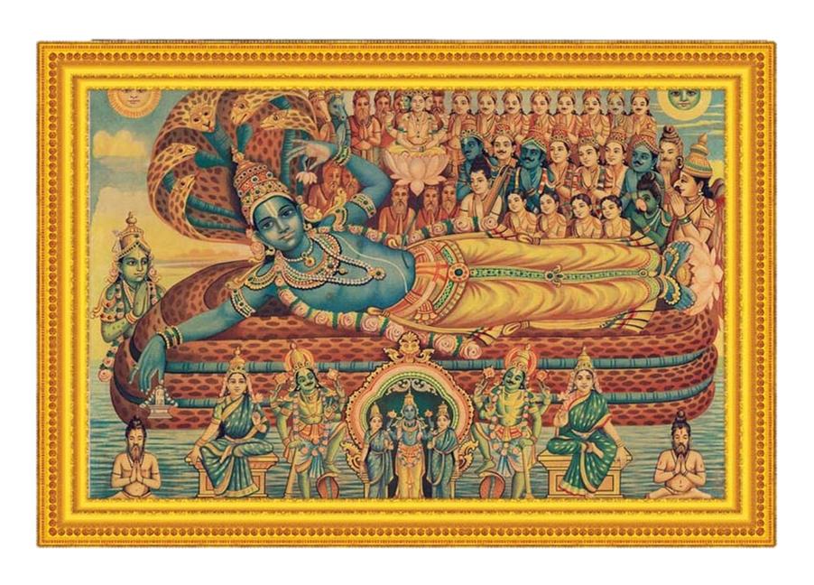 Introducing the Sri Renganatha Perumal Antique Photo Frame, a captivating blend of artistry and spirituality. This exquisite frame features Lord Renganatha Perumal, the manifestation of Lord Vishnu, exuding an aura of divine grace and tranquility. The antique finish adds a touch of timeless elegance, making it a perfect addition to your sacred space or home decor. Each intricate detail reflects the devotion and craftsmanship poured into creating this masterpiece. Radiating blessings and serenity, this photo frame serves as a reminder of faith and reverence, making it an ideal gift or cherished personal keepsake. Bring home the divine essence of Sri Renganatha Perumal with this stunning antique photo frame.