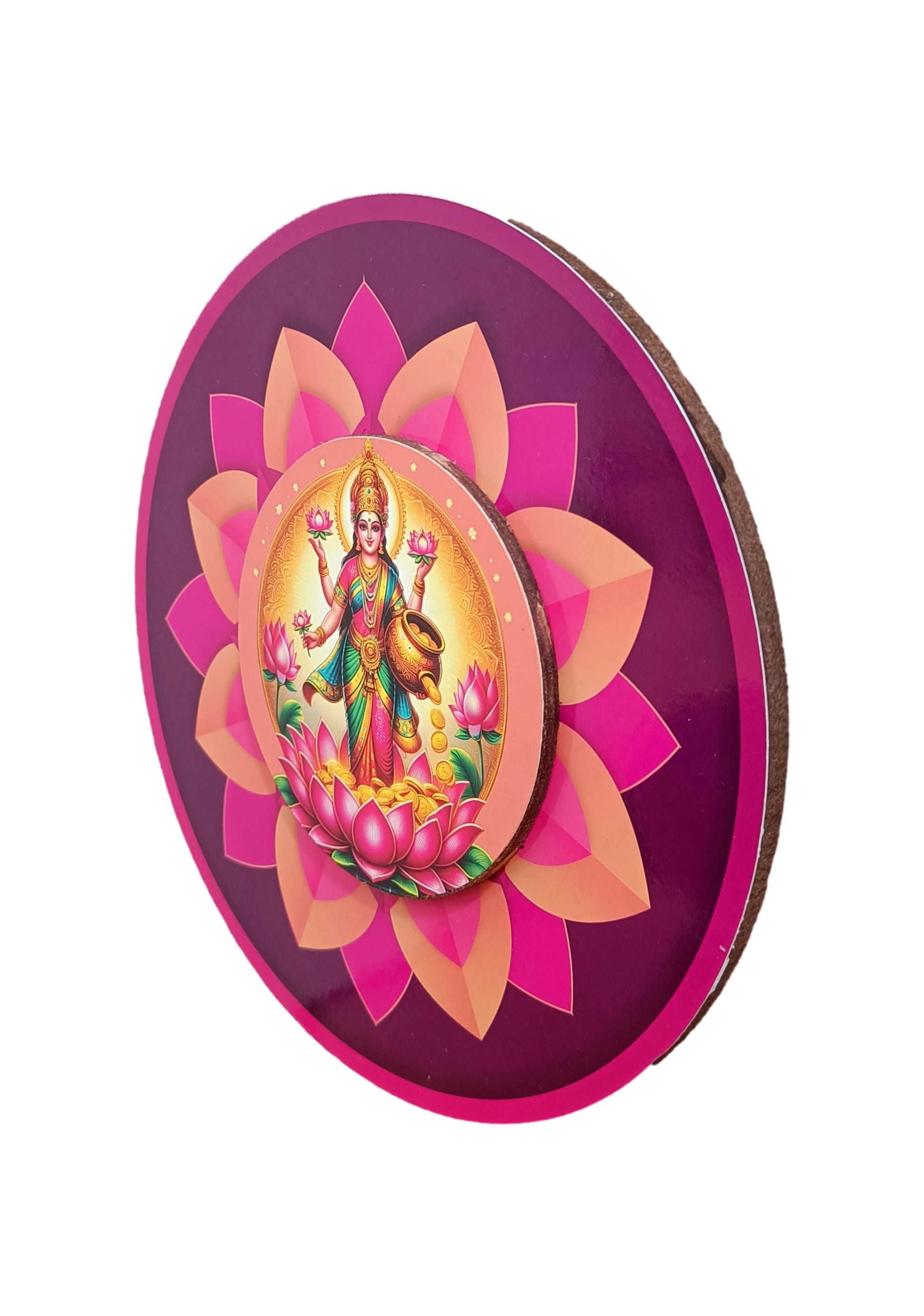Sri MahaLakshmi Thayar Wooden Wall Hanging Pink Lotus Art Work / Decor and Gifting