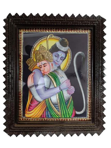 Tanjore Painting In Teak Wood Frame - Ram Hanuman (With Frame)