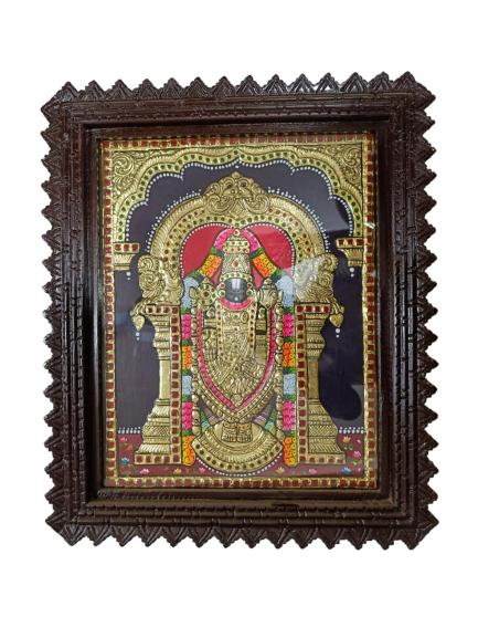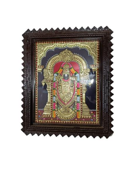Tanjore Painting In Teak Wood Frame - Tirupathi Venkateshwara (With Frame)