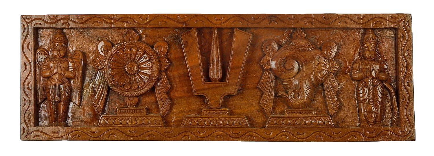 Thenkalai Thiruman/ Naamam Sangu Chakram Wood Wall Hanging