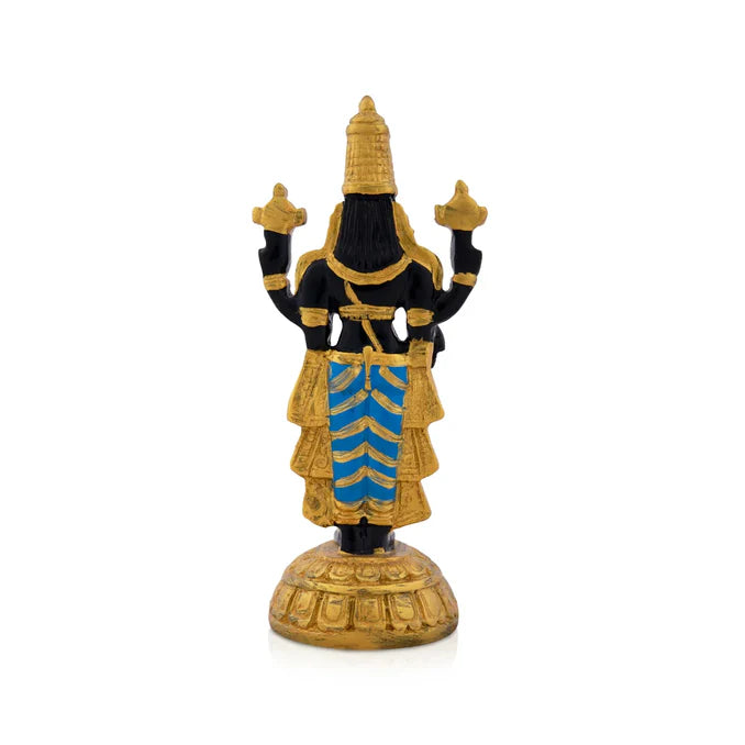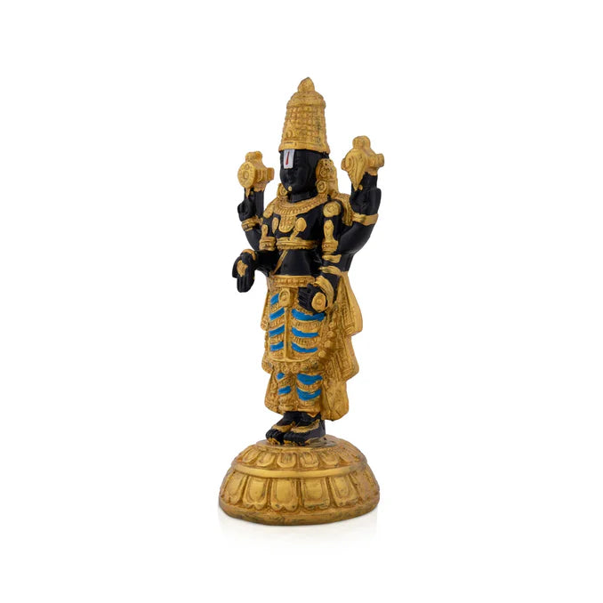This elegant Tirupati Balaji idol features the Lord in a majestic standing posture, finished in deep black with beautifully detailed ornaments. Representing wealth, protection, and divine grace, it is perfect for home altars, spiritual decor, or as a blessed gift for loved ones on auspicious occasions.