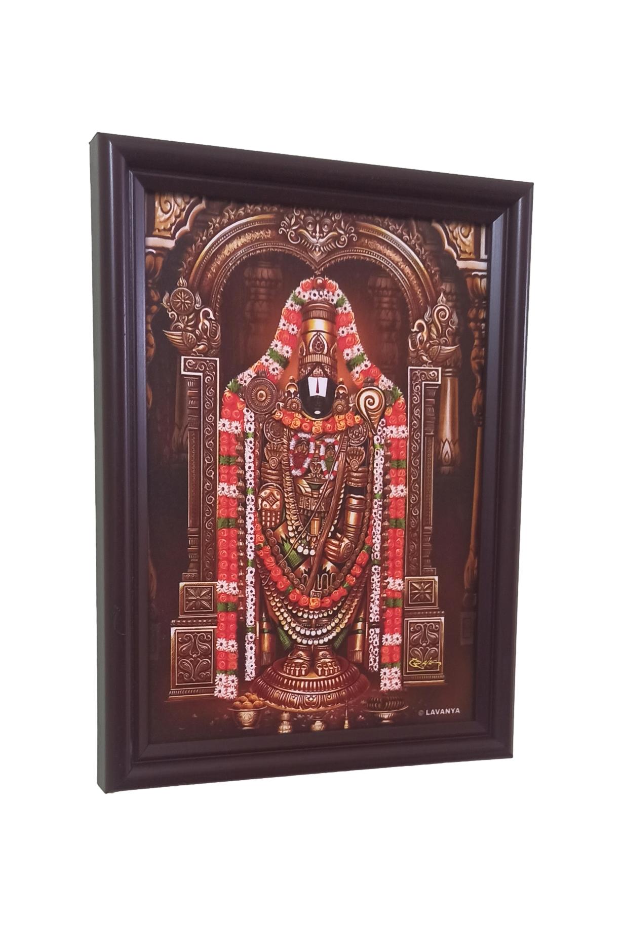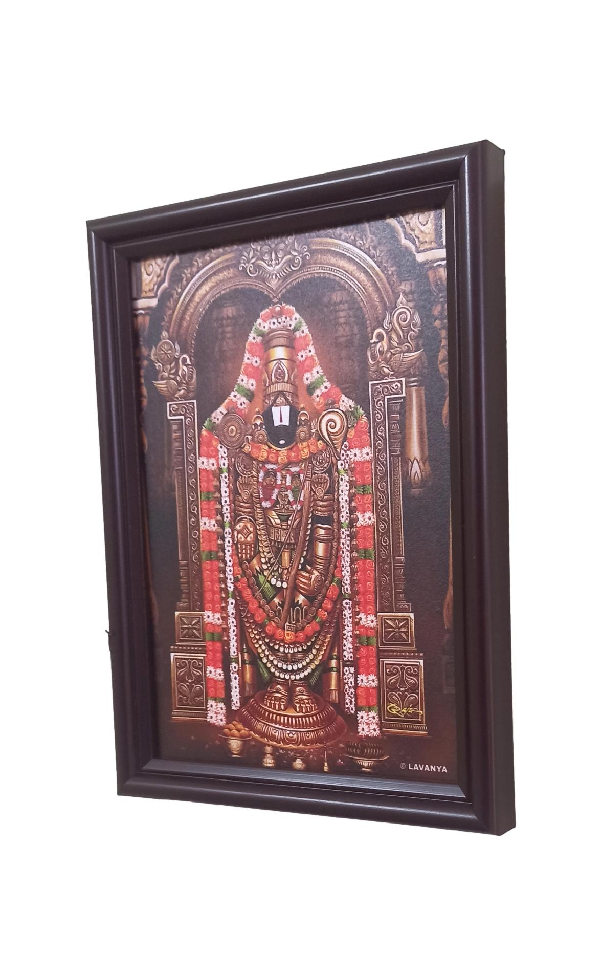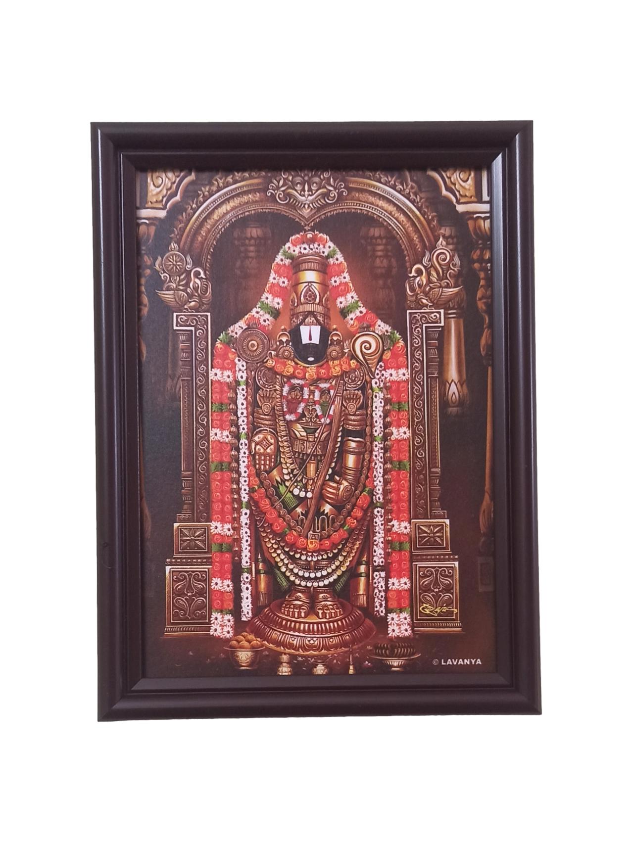 The Tirupathi Venkateshwara Perumal Photo Frame is a divine and cherished depiction of Lord Venkateshwara, also known as Sri Balaji, the presiding deity of Tirumala Tirupati. Encased in a high-quality frame, this photo showcases intricate details and vibrant colors, capturing the divine essence and grace of Lord Venkateshwara. Its compact size makes it ideal for home altars, puja rooms, or as a sacred decor piece. The photo frame symbolizes devotion, prosperity, and spiritual blessings, creating a serene ambiance of reverence and spirituality. It is a perfect addition to any devotee's collection, invoking divine grace and auspiciousness.