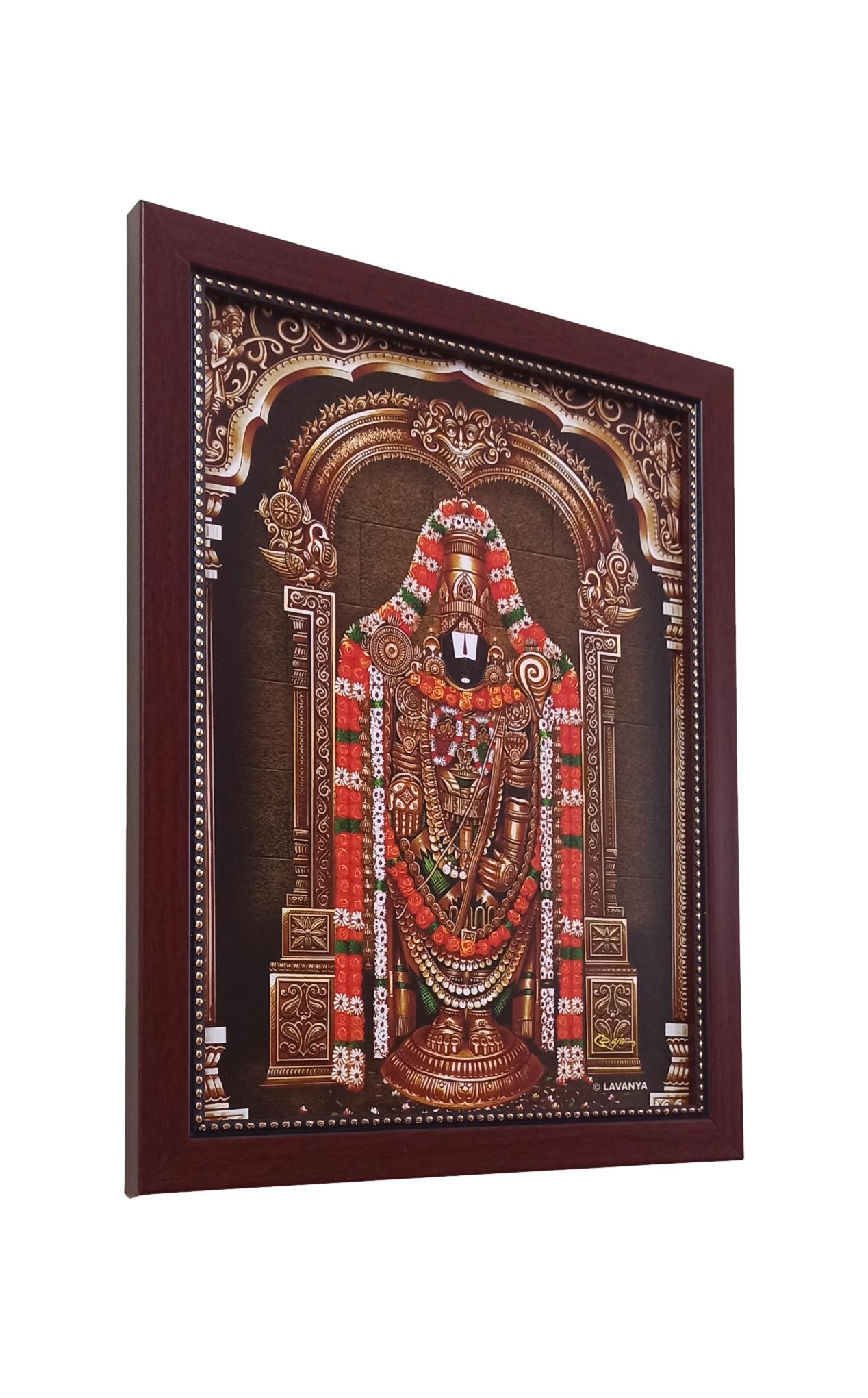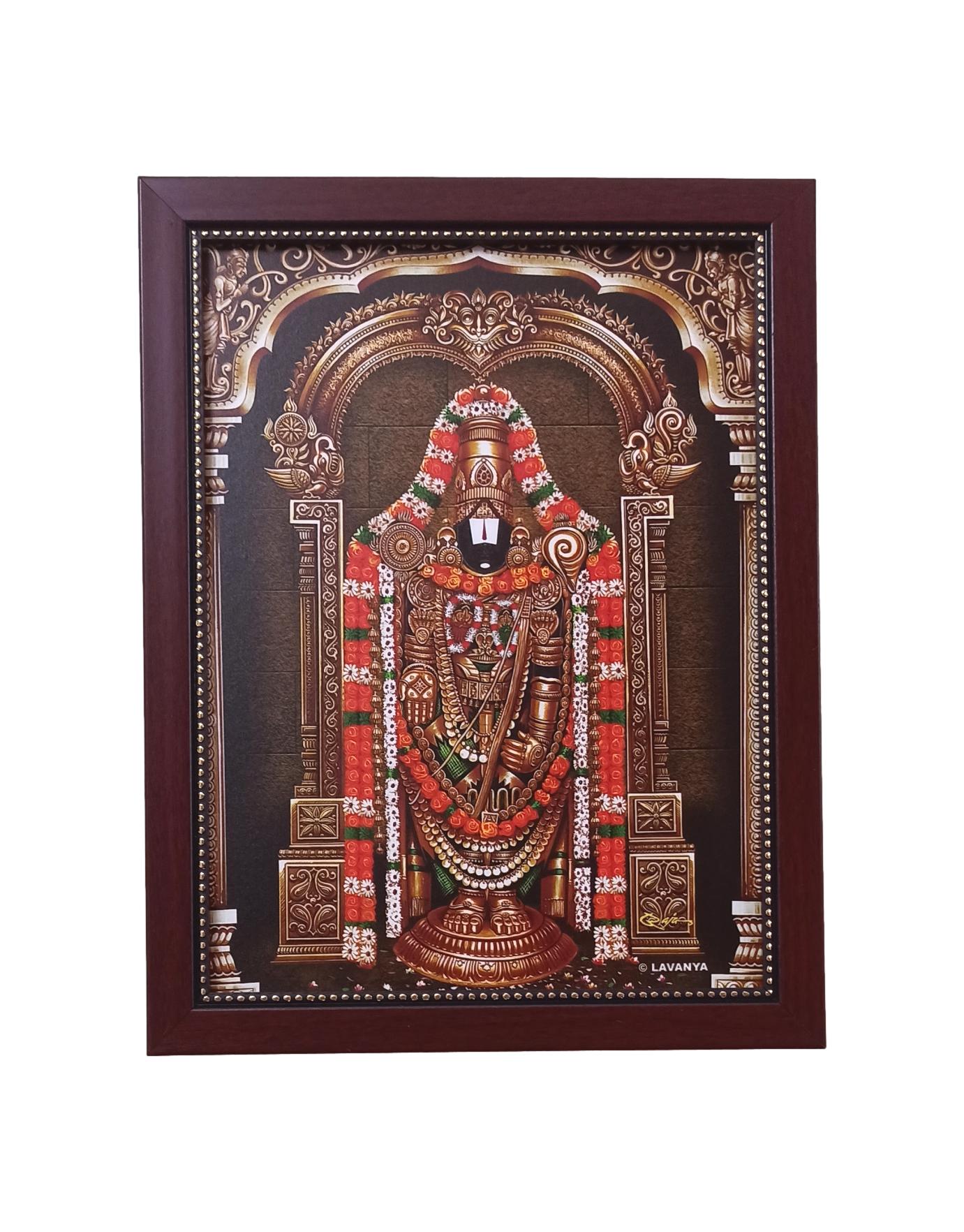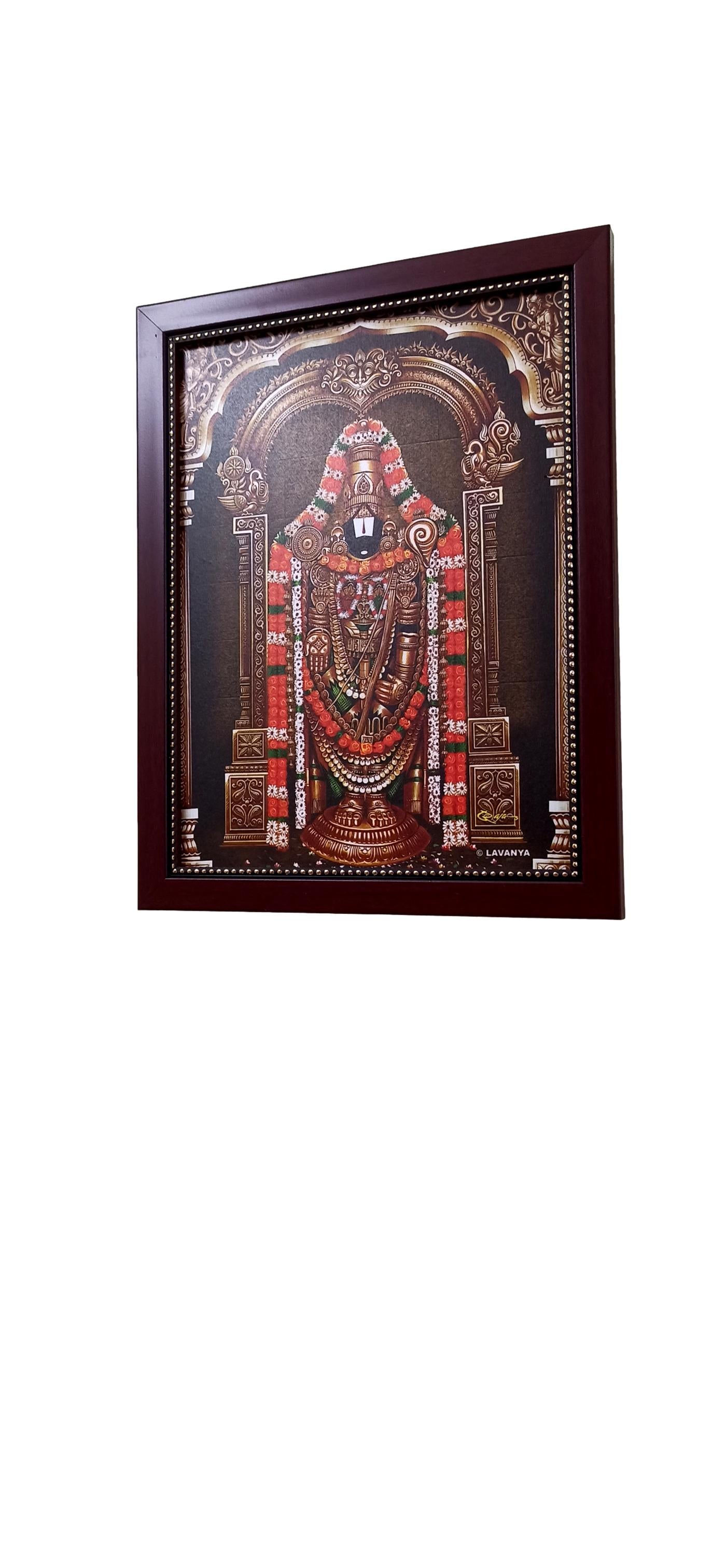 The Tirupathi Venkateshwara Perumal Photo Frame is a divine and elegant portrayal of Lord Venkateshwara, also known as Srinivasa or Balaji, the revered deity of Tirumala Tirupati. Encased in a high-quality frame, this photo captures the serene and majestic presence of Lord Venkateshwara, radiating spiritual energy and blessings. The frame is adorned with intricate designs and embellishments, adding to its aesthetic appeal. Ideal for home altars, puja rooms, or as a sacred decor piece, this photo frame serves as a constant reminder of devotion, prosperity, and divine grace, enhancing the ambiance of any space with reverence and spirituality.