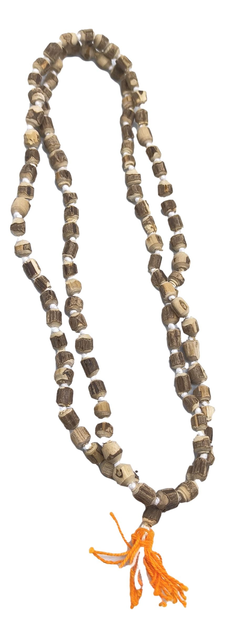 The Tulsi Mala is a sacred string of beads made from the holy basil plant (Ocimum sanctum). Revered in Hindu traditions, it is believed to have spiritual and healing properties. Each bead is meticulously handcrafted and strung together to form a traditional mala. The Tulsi Mala is used in prayers, meditation, and spiritual practices to invoke blessings, promote focus, and purify the mind. Its natural fragrance and smooth texture add to its allure, making it a cherished accessory for devotees and spiritual seekers alike.