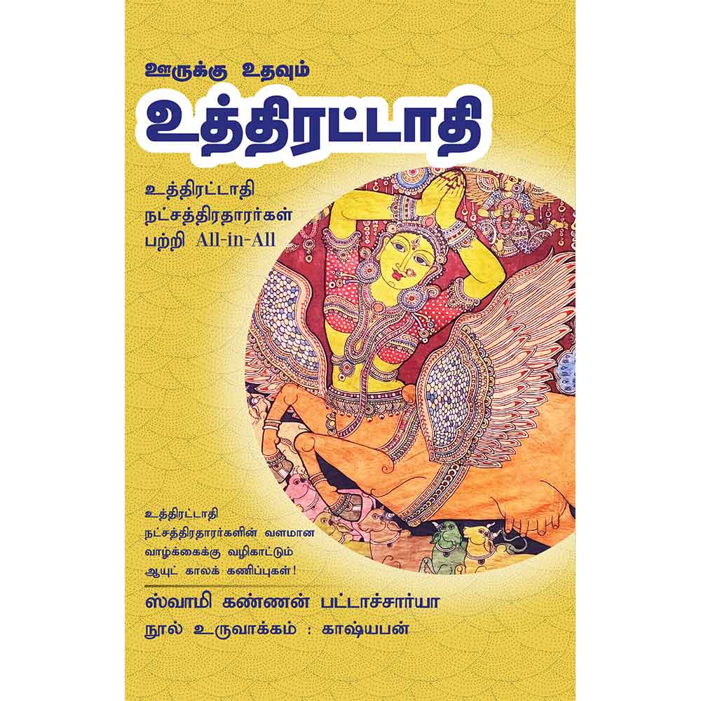 "Uthiratadhi" or "உத்திரட்டாதி" is a comprehensive guide titled "Oorukku Uthavum Uththirattadhi All-in-All About Uthratathi Nakshatra." This insightful book delves into the intricacies of Uthratathi Nakshatra, offering a deep exploration of its characteristics, significance, and impact on individuals born under this star. From personality traits to career prospects, relationships, and spiritual inclinations, "Uthiratadhi" provides a holistic view, making it an invaluable resource for astrology enthusiasts, practitioners, and those curious about the cosmic influences shaping their lives. With detailed explanations, charts, and practical insights, this book is a must-have for anyone seeking a deeper understanding of Uthratathi Nakshatra.