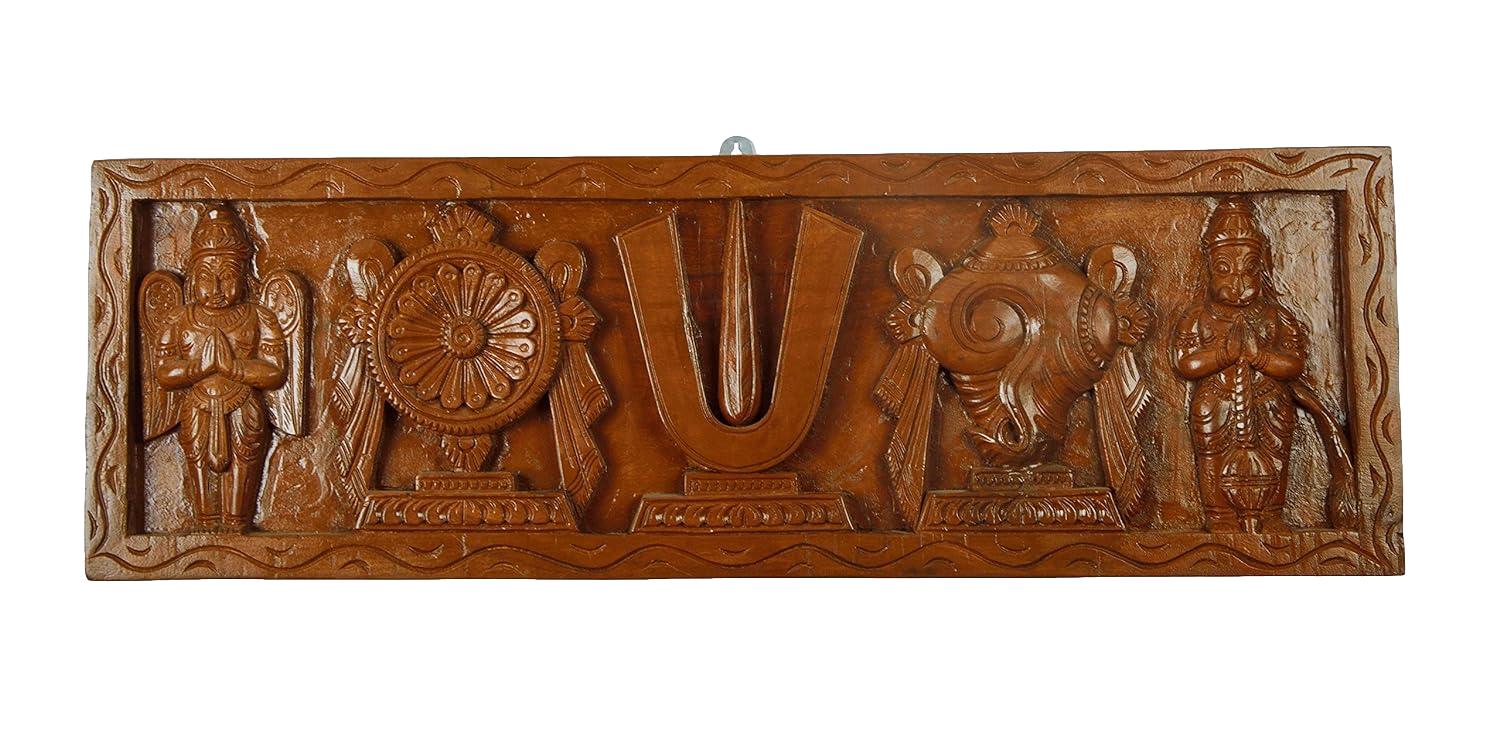 Vadakalai Thiruman/ Naamam Sangu Chakram Wood Wall Hanging