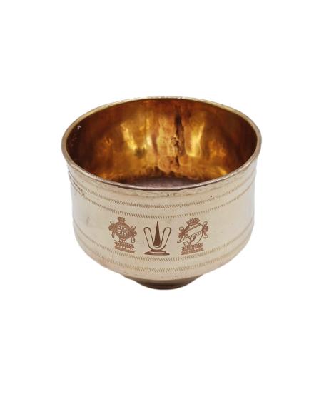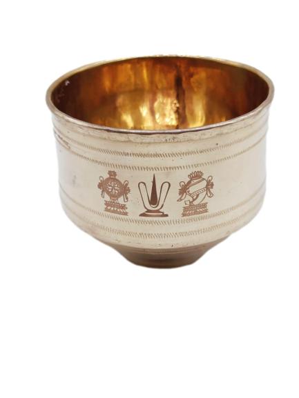 The Copper Vattil is a versatile and sacred accessory for Tiruvarathanam (ritualistic worship) and pooja ceremonies. Crafted from high-quality copper, it is durable and corrosion-resistant, ideal for holding water or sacred items during rituals. The Vattil features intricate engravings of Tiruman (the sacred Vaishnavite symbol) and Shanu Chakram (the divine discus), symbolizing divine protection and auspiciousness. Its compact size and sturdy build make it easy to handle and perfect for home altars or temple use. This Vattil adds a touch of tradition and spirituality to worship practices, invoking blessings of prosperity, purity, and divine grace during pooja ceremonies and Tiruvarathanam.