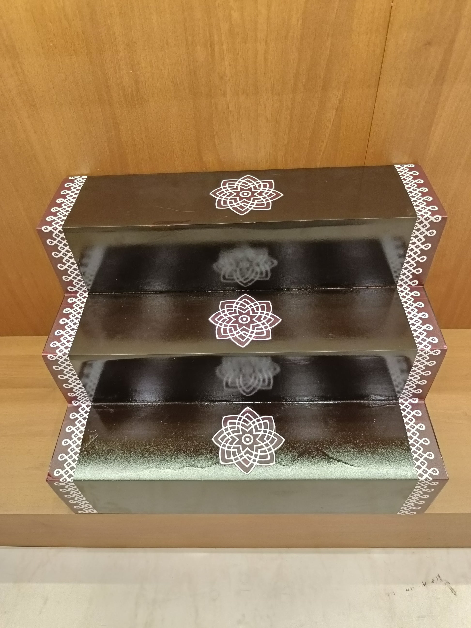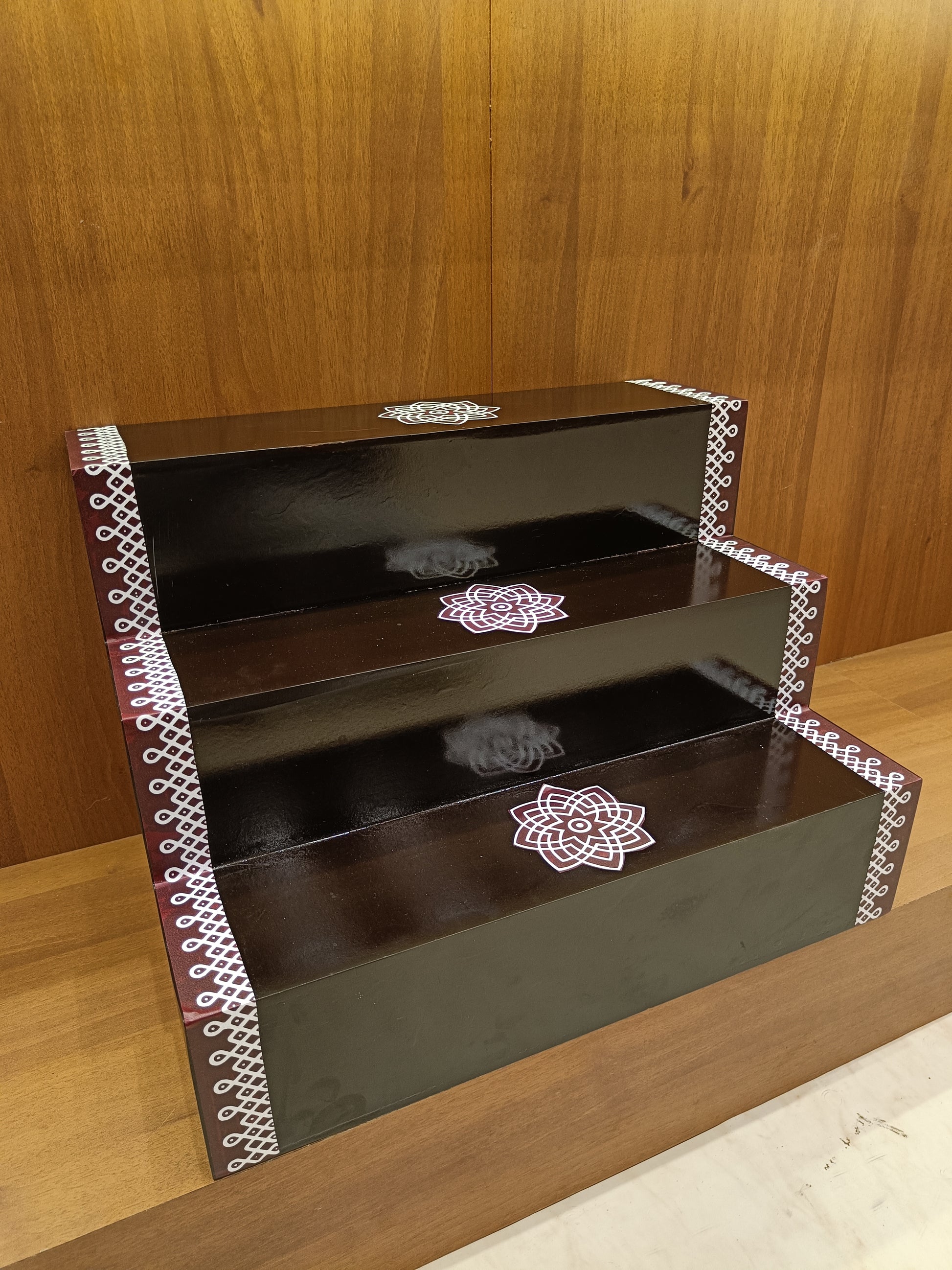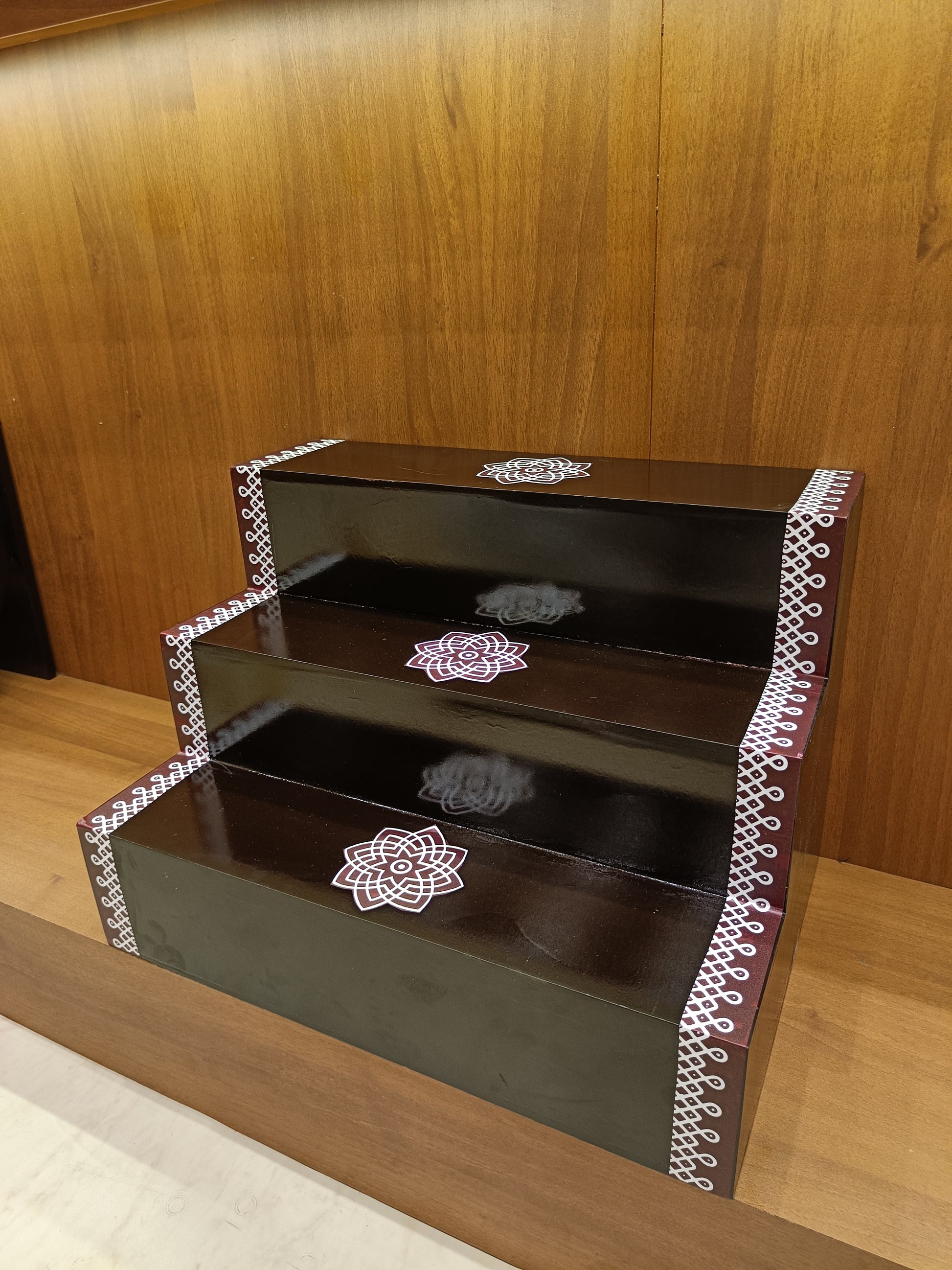– Design: 3-step stand, no gaps, with Rangoli artwork
