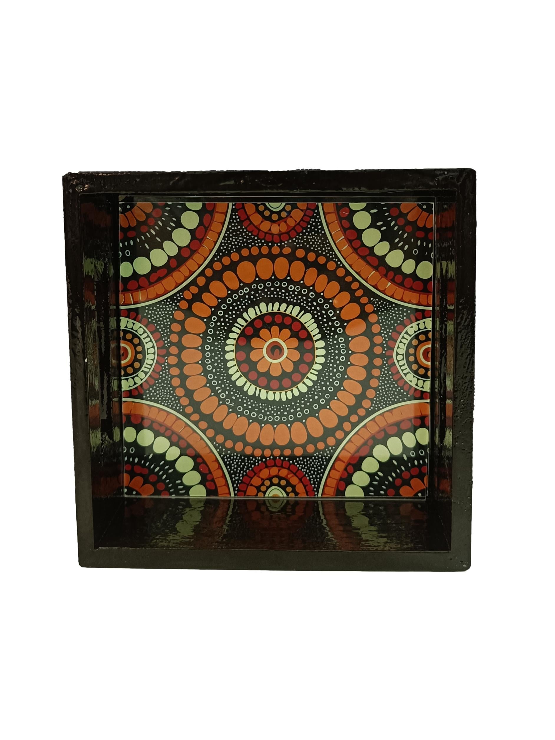 Wooden Dot Mandala Art Square Multipurpose Tray