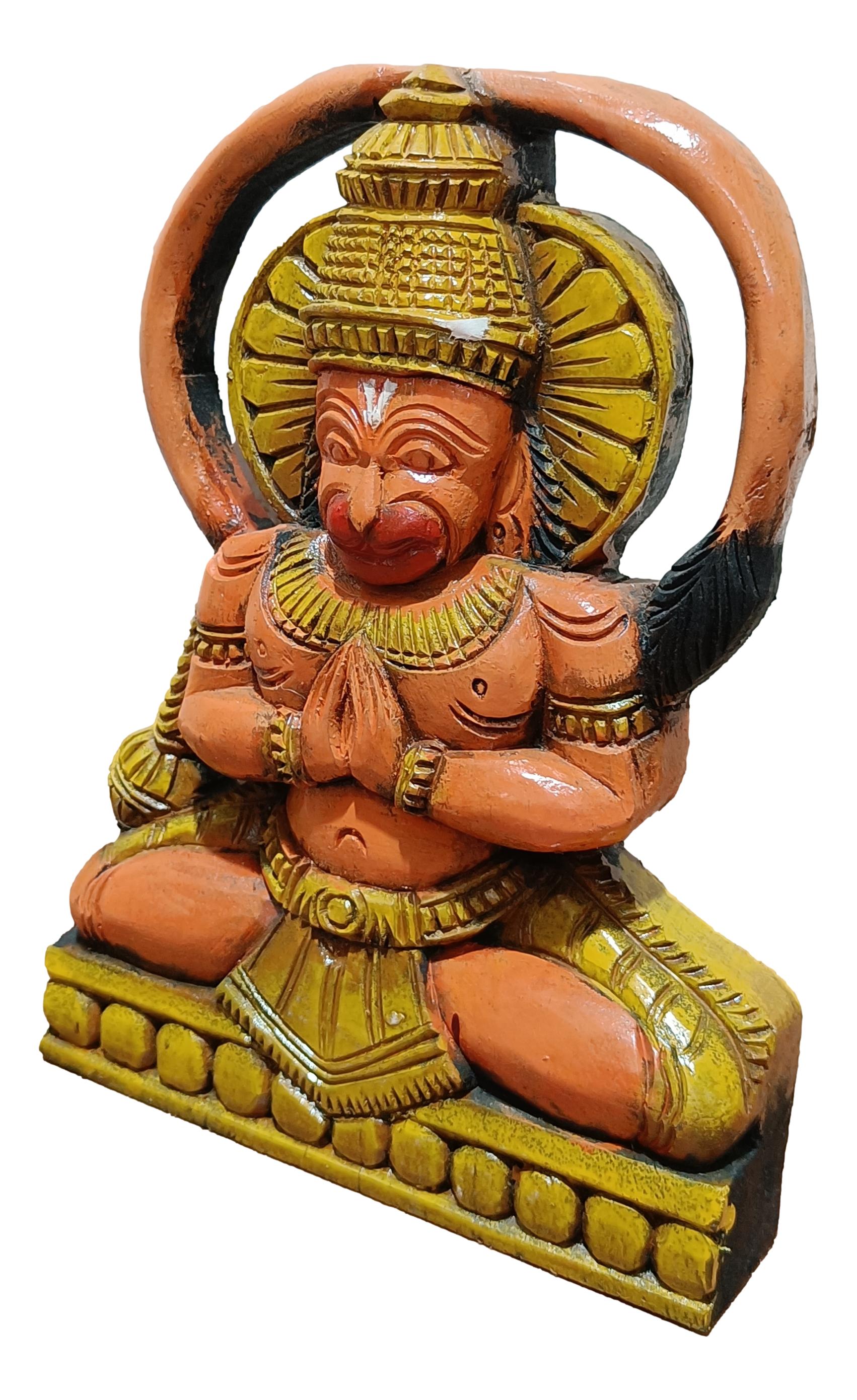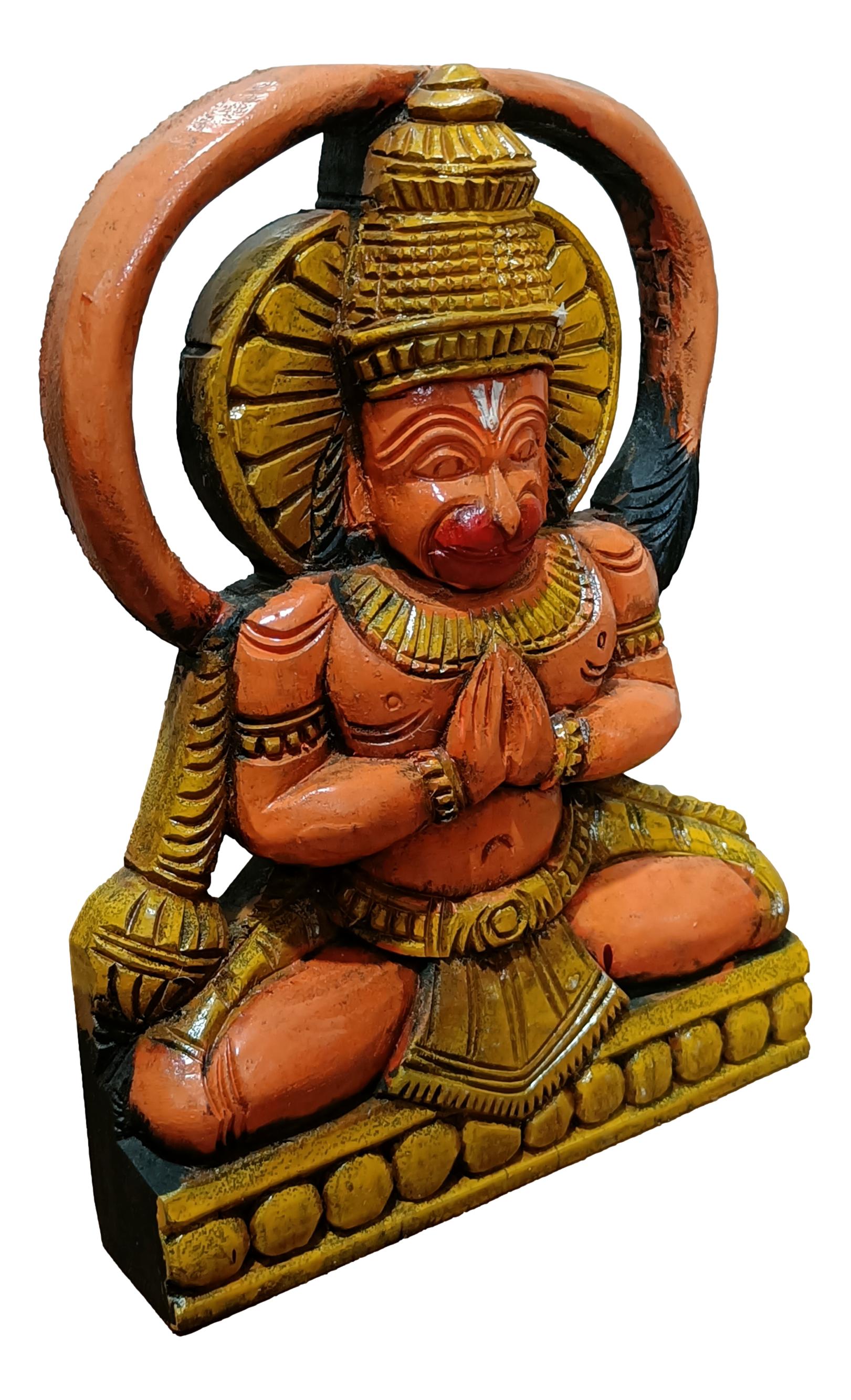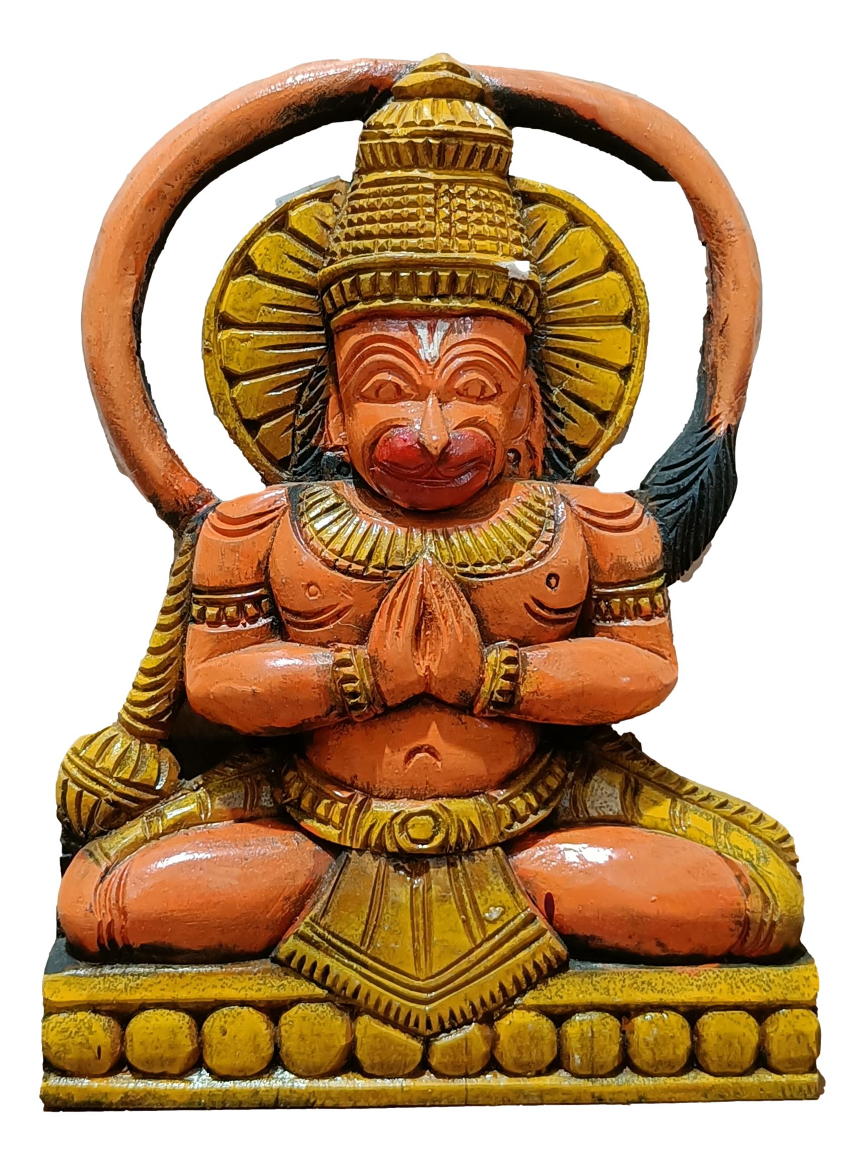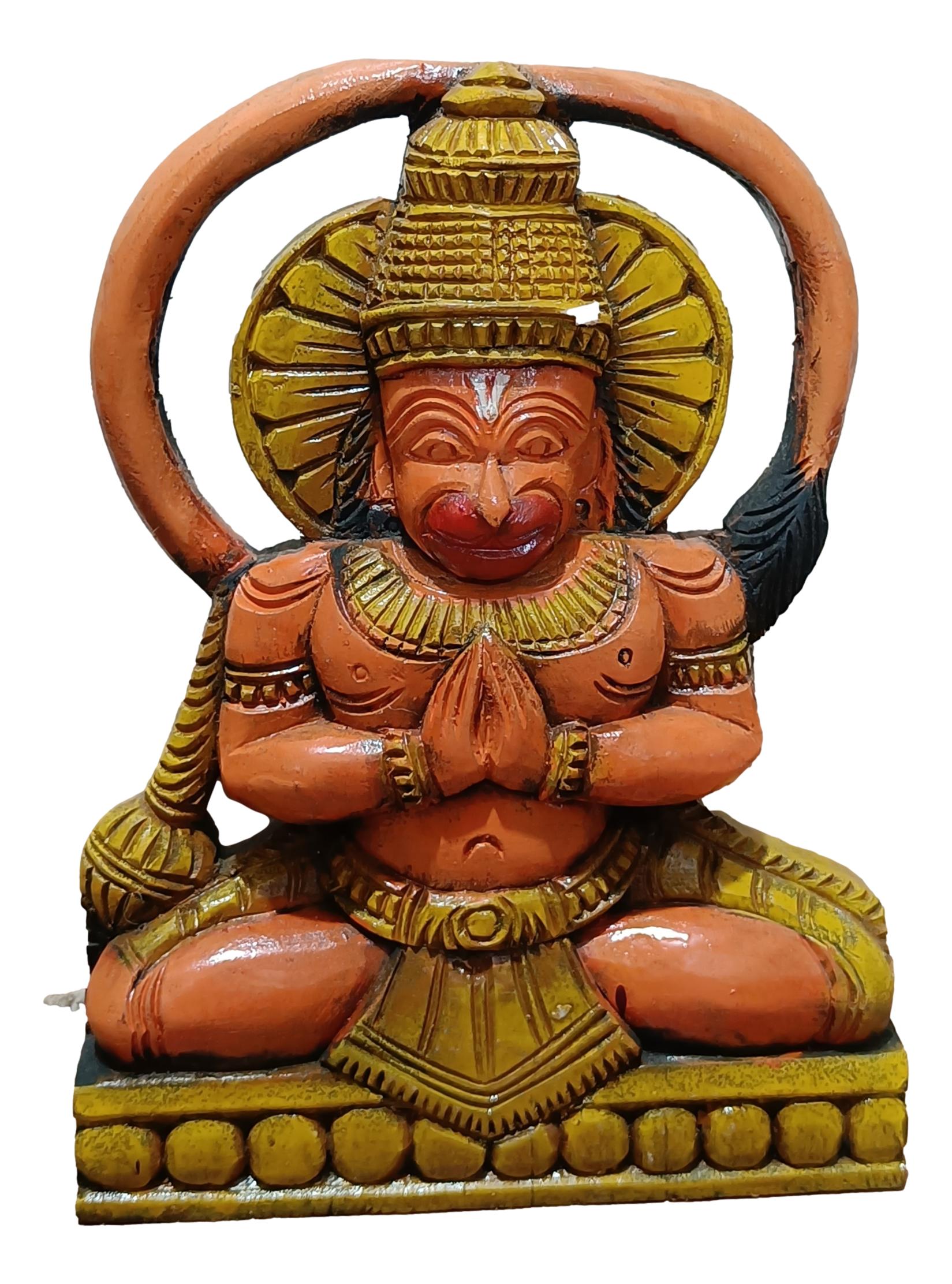 Infuse your home or sacred space with the blessings and vibrant energy of this Wooden Hanuman Deity Multicolour idol, a timeless piece that combines devotion and artistry.
