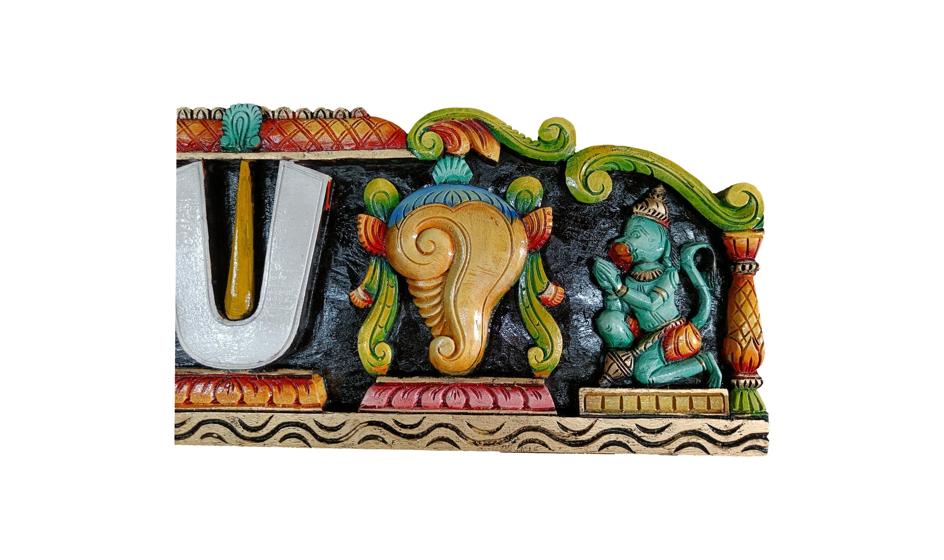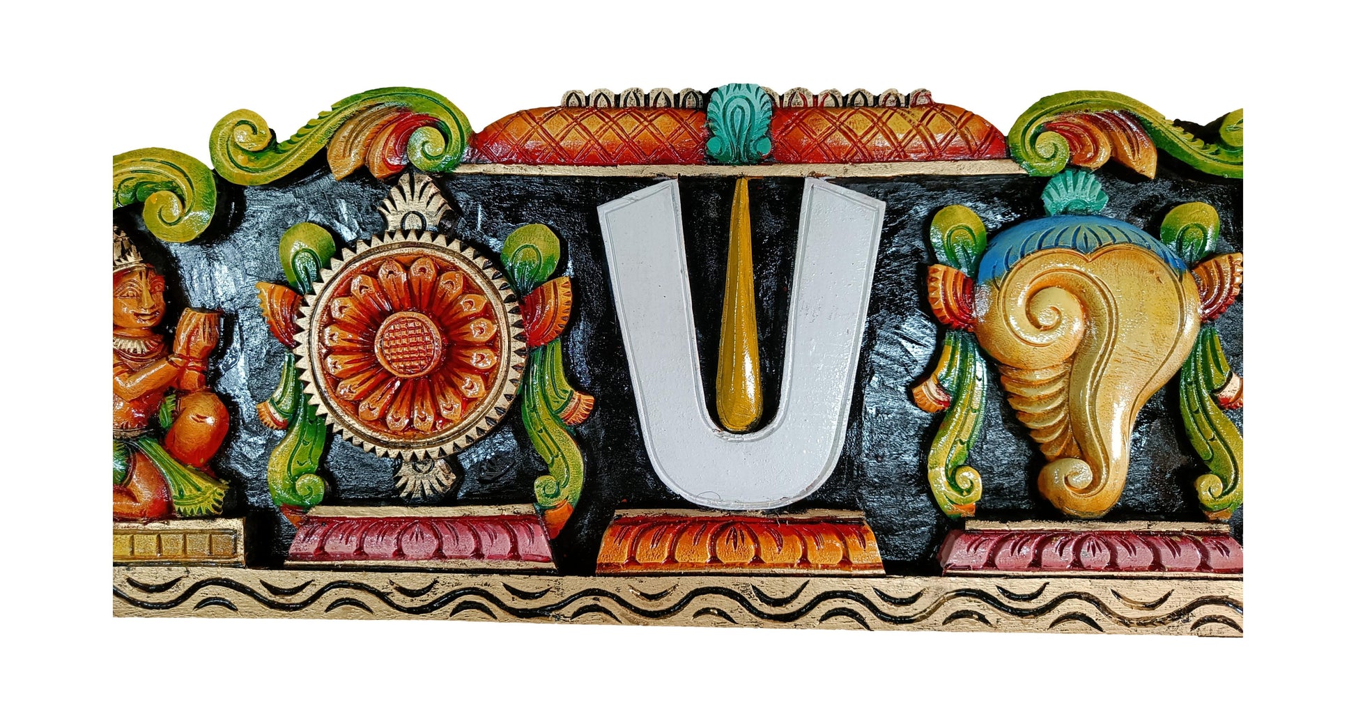 Wooden Handcrafted Vadakalai Thiruman Wall Hanging with Chakra and Shanku – Traditional Temple Style Décor