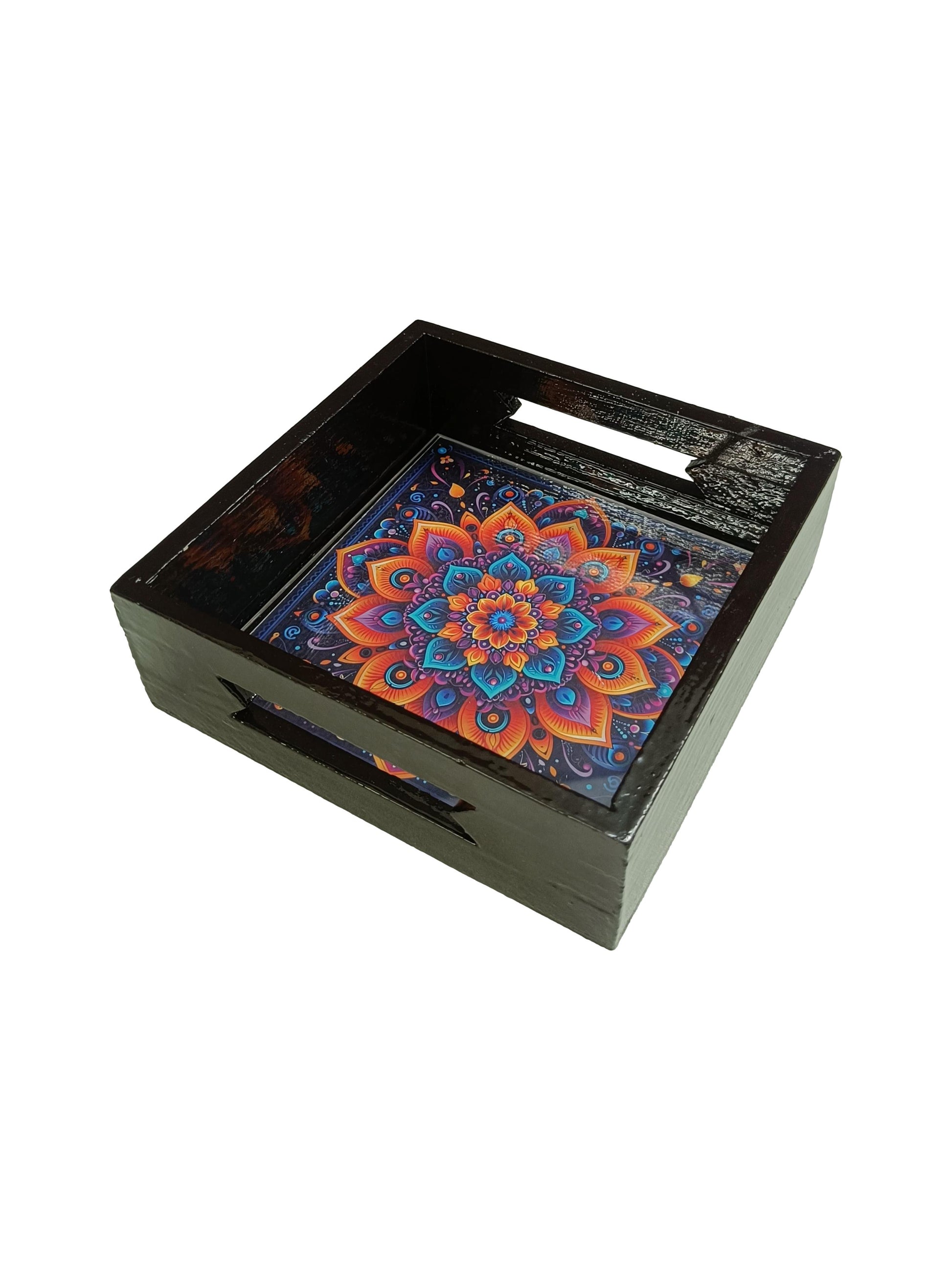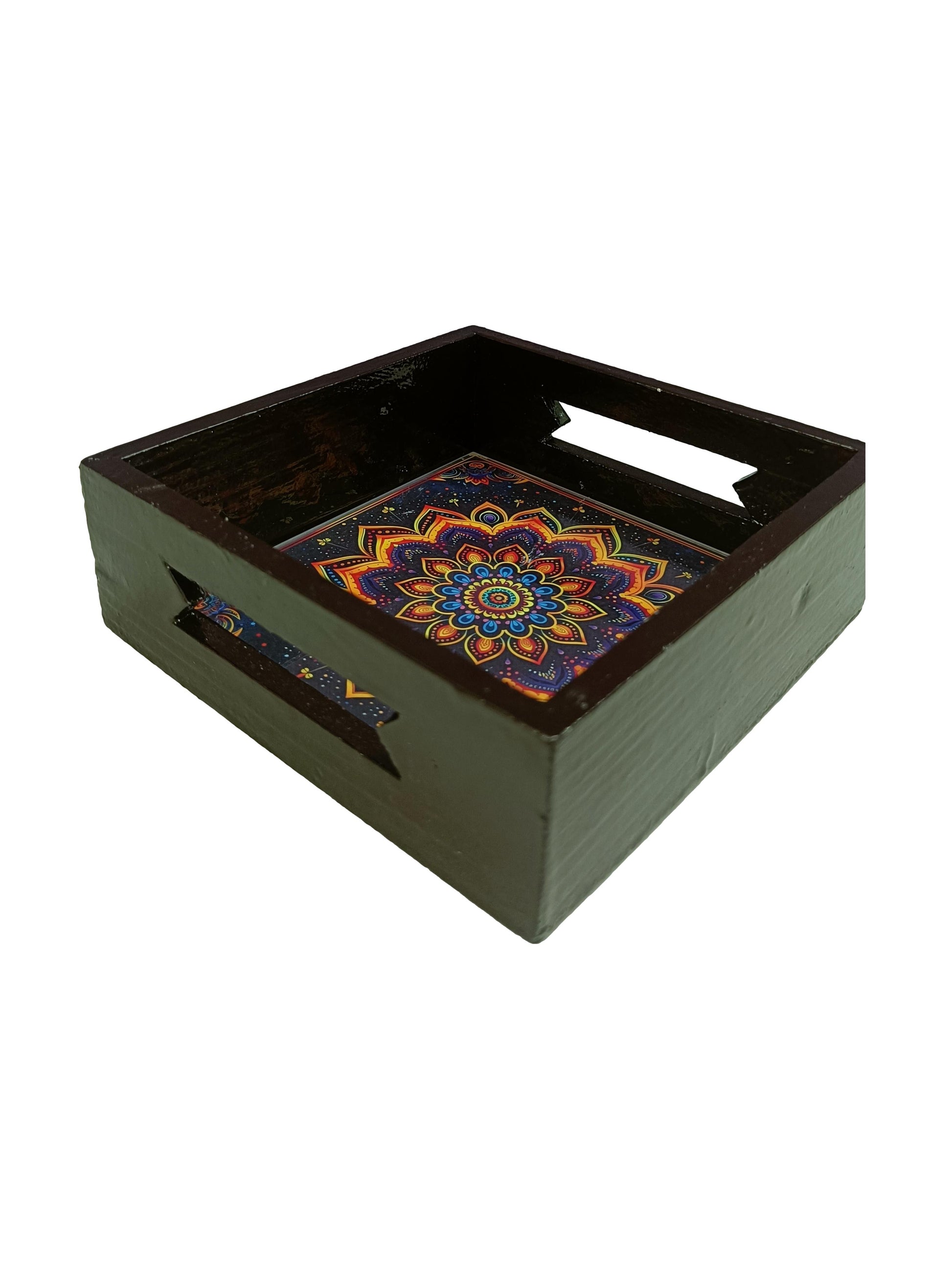 Bring home the Wooden Mandala Art Square Tray with Handle today, and add an essence of ethnic beauty to your space!