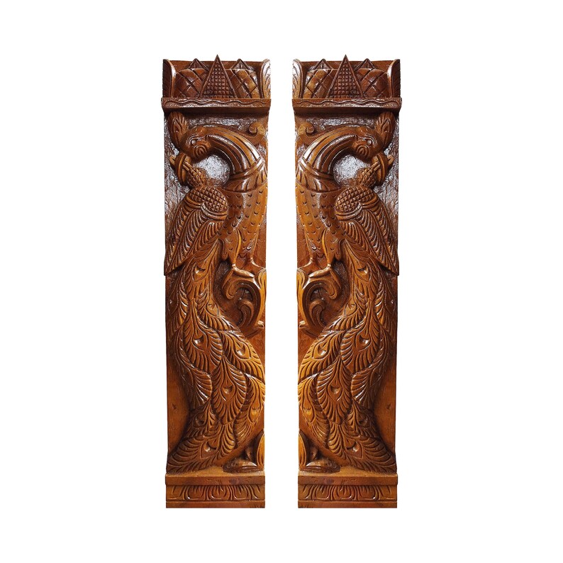 The natural golden hue and unique grain patterns of jackfruit wood add depth and character to the artwork, creating a visually captivating piece. The peacock symbolizes beauty, grace, and spirituality in many cultures, making this wall art not just a decorative item but also a symbol of elegance and positivity.