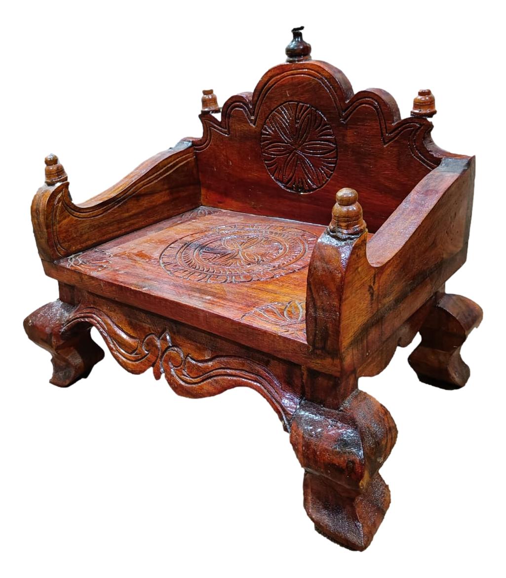 The Jackfruit Wood Simhasanam is a majestic Deity Stand or Pooja Stand with four large legs, crafted from durable and beautiful jackfruit wood. Its intricate design and sturdy construction make it an ideal choice for showcasing deities or performing rituals with grace and elegance. The natural grain and rich color of the jackfruit wood add a touch of traditional charm to any sacred space. This stand's spacious platform provides ample room for placing idols, lamps, and other ritual items, making it a versatile and essential piece for home altars, temples, or spiritual gatherings, symbolizing strength, stability, and devotion.
